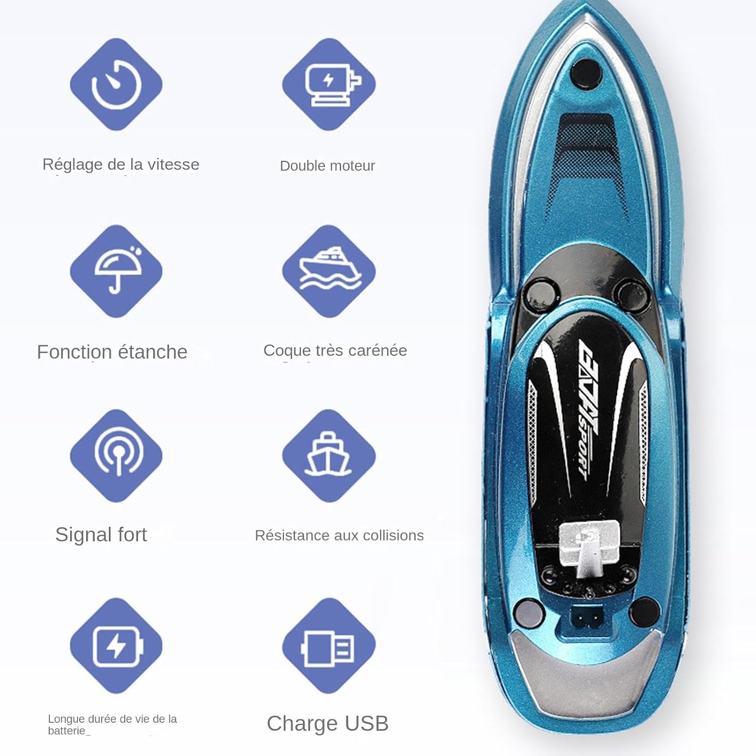 Design ricaricabile tramite USB: goditi un'eccitazione duratura con il design ricaricabile della nostra barca veloce telecomandata. Non c'è bisogno di cambiare frequentemente la batteria: basta caricarla per giocare senza interruzioni. Facile da controllare: vivi emozionanti avventure e gare acquatiche con manovre precise attivate dalla funzione di telecomando avanzata, perfetta per il controllo a lunga distanza. Navigazione fluida: garantisce buone prestazioni con un design preciso per una navigazione fluida anche in acque turbolente, alimentato da un potente motore per un'esperienza emozionante. Molti metodi di gioco: con diversi modi di giocare, questa barca veloce telecomandata è ideale per correre con gli amici o per divertirsi da solo. Perfetto per riunioni di famiglia. Facile da impugnare: progettato con precisione, questo fuoribordo telecomandato ruota la testa grazie alla sua struttura elegante e compatta e facile da tenere: rendendolo la scelta migliore per gli amanti dei giocattoli acquatici.
