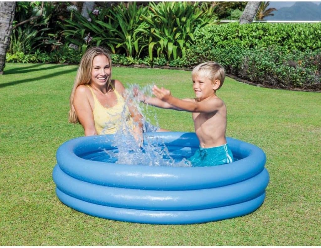 Comodo, leggero, maneggevole, sicuro e pratico Facilmente lavabile, resistente e confortevole Con 3 anelli gonfiabili, capacità acqua 132 litri, livello di riempimento consigliato 17 cm, da 2 anni in su Toppa di riparazione inclusa Nota! Non installare la piscina per bambini su cemento, asfalto o qualsiasi altra superficie dura