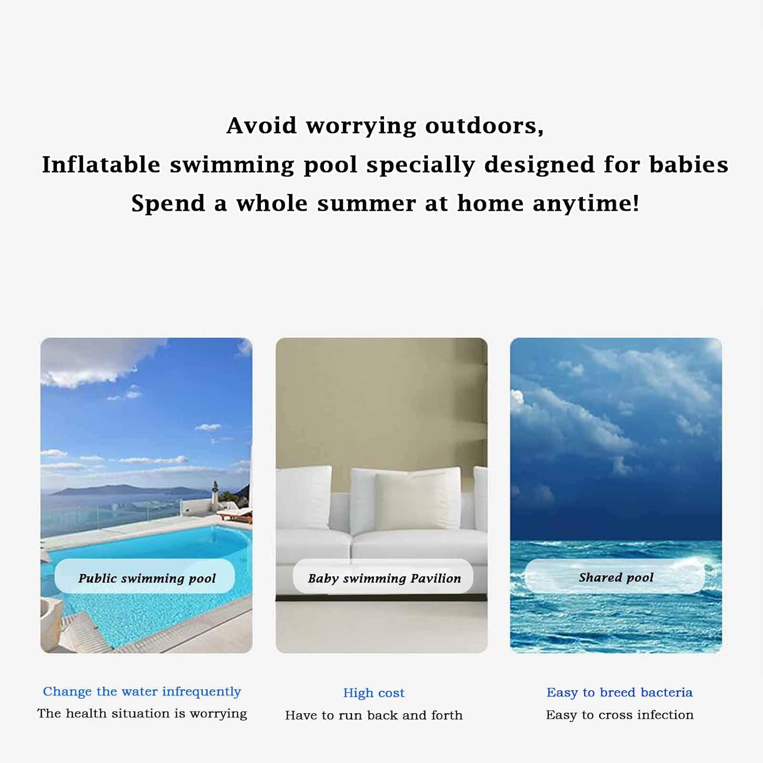 [PISCINA PER FAMIGLIE PULITA E CONFORTEVOLE]: La nostra piscina gonfiabile permette a te e alla tua famiglia di avere una piscina pulita e igienica direttamente a casa. Il fondo della piscina è realizzato in PVC gonfiabile spesso, comodo e sicuro. [impeccabile? SCELTA]: La piscina fuori terra può ospitare tutta la famiglia e offre spazio a sufficienza per far giocare te e tuo figlio. Non è solo una piscina, ma anche una piscina di palline. [RELAX, INTRATTENIMENTO]: La spaziosa e confortevole piscina fuori terra offre spazio a sufficienza per il relax. Il PVC ecologico e il fondo spesso sono morbidi, lisci, confortevoli ed elastici, permettendo a te e alla tua famiglia di rilassarvi completamente nella nostra piscina per adulti. [STABILE E ANTI-INVECCHIAMENTO]: la piscina per bambini realizzata in PVC a tre strati, una risorsa di protezione ambientale, può resistere al sole, agli strappi e all'invecchiamento. [SERVIZIO DI QUALITÀ]: se riscontri problemi durante l'acquisto di una piscina, non esitare a contattarci, ti forniremo una soluzione soddisfacente e ti offriremo un'esperienza di acquisto piacevole.