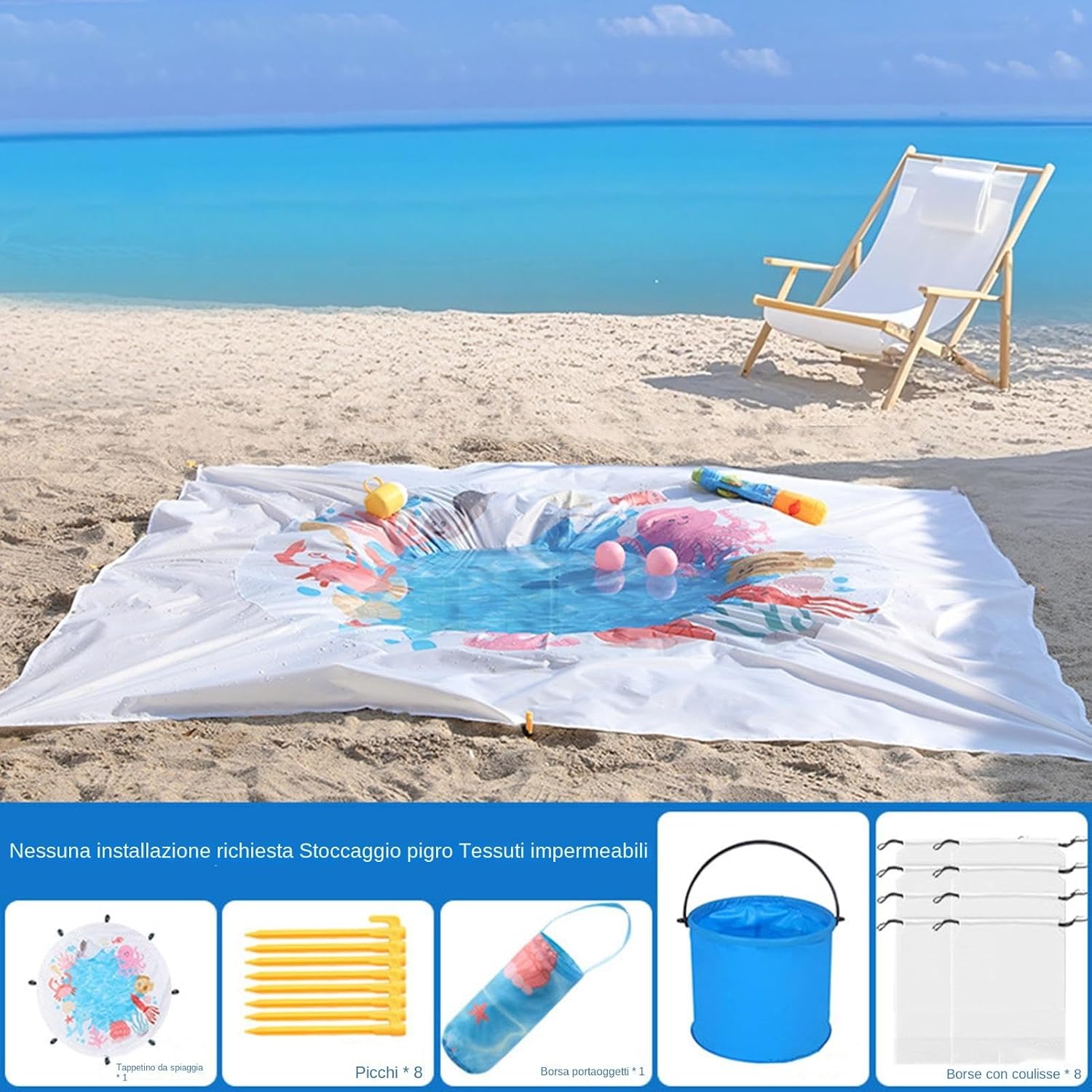 Stabilità garantizzata: Combinazione unica di 4 punti di ancoraggio rinforzati e cinture regolabili crea base sicura per il gioco, prevenendo spostamenti improvvisi durante l'uso su qualsiasi tipo di superficie esterna Esplorazione acquatica sicura: Design studiato con spessori rinforzati e bordi arrotondati che previene fuoriuscite di sabbia, permettendo ai bimbi di sperimentare texture diverse in totale sicurezza Ampia applicabilità: Offre un'area espandibile con capacità idrica regolabile, garantendo versatilità per uso esterno e interazione familiare, adatto a diverse situazioni di gioco per tutte le età con utilizzo multifunzionale Tessuto robusto: Costruzione in materiale ad alta densità che assicura resistenza prolungata, anti-strappo, dotato di schermatura UV efficace e grande adattabilità a tutte le condizioni atmosferiche esterne Praticità portatile: Combina design pieghevole compatto e peso leggero per un montaggio immediato, perfetta per avventure all'aperto e viaggi con massima praticità di trasporto grazie alla struttura minimizzata