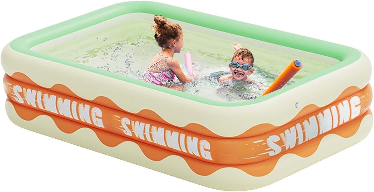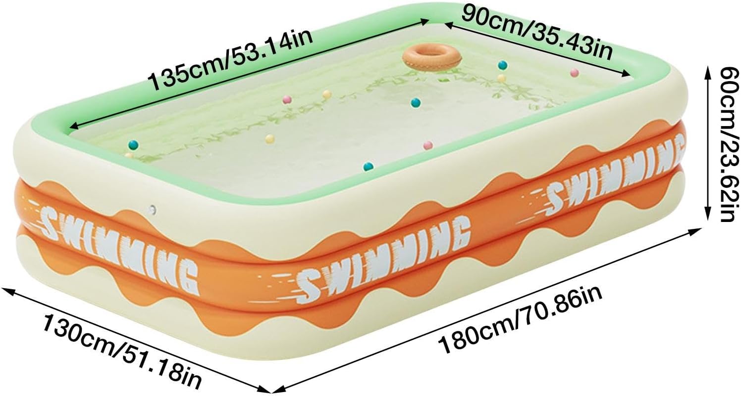 Divertimento a prova di protezione solare: questa piscina gonfiabile è realizzata in materiale resistente e resistente ai raggi UV e fornisce protezione solare ideale per i bambini bloccando efficacemente i dannosi raggi UVA e UVB. La sua funzione di sicurezza avanzata garantisce divertimento ininterrotto e sicuro per i tuoi bambini. Gonfiaggio rapido: grazie alle doppie valvole che assicurano che non fuoriescano perdite, questa piscina gonfiabile si gonfia rapidamente e permette un montaggio rapido e semplice in soli 2-4 minuti con una pompa ad aria elettrica. Multiuso: crea un'area giochi versatile con questa piscina gonfiabile che offre più possibilità di divertimento in famiglia. Ideale per uso interno ed esterno, questa piscina multifunzionale dispone di una comoda area salotto e può essere trasformata in una vasca di palline, una sabbiera e altro ancora. Affidabile e confortevole: con un fondo a bolle gonfiabile ispessito, la nostra piscina attutisce il gioco dei bambini, garantisce un'esperienza morbida e confortevole e riduce il rischio di cadute. Versatilità divertente: Adoro l'aspetto attraente e il design versatile della nostra piscina gonfiabile che funge anche da piscina con palline. Goditi più divertimento dentro e fuori con la piscina per bambini, perfetta per il contenuto della famiglia e l'intrattenimento.