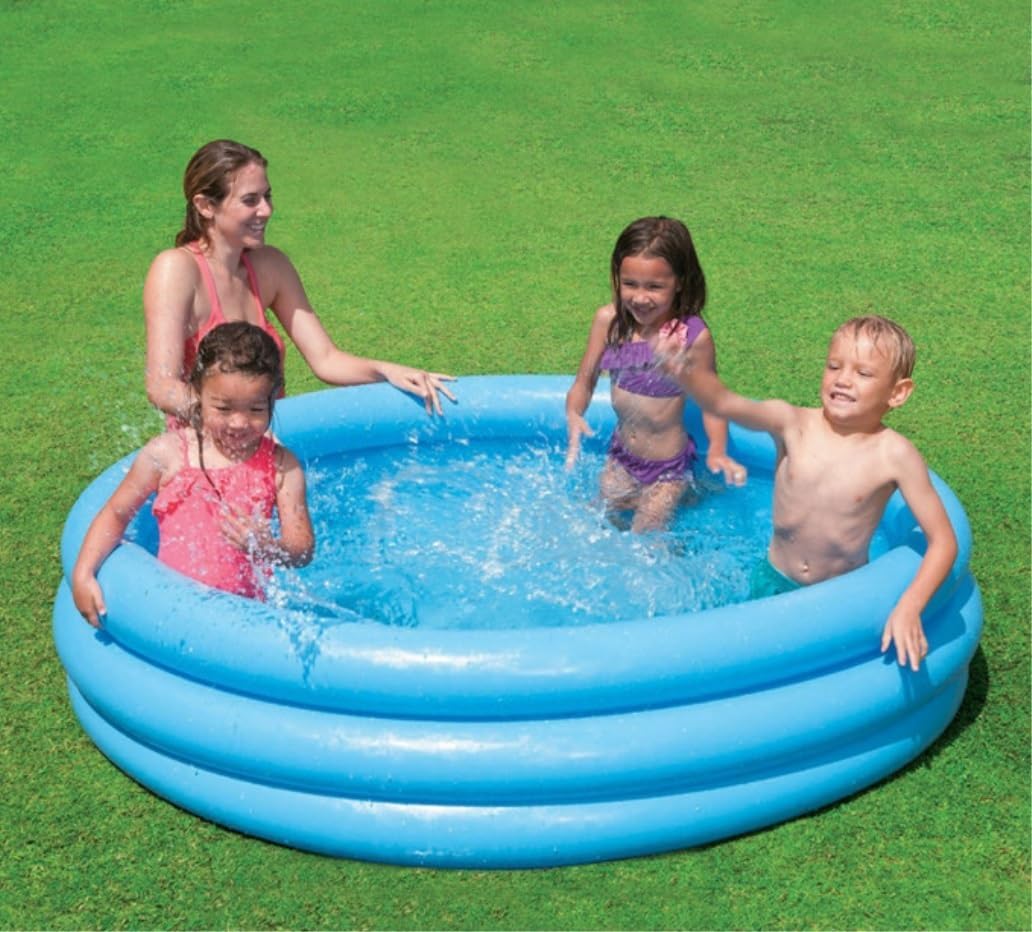 Safe and durable The inflatable swimming pool is made of tough meterial, which is 50% thicker than most products on The market, thus reducin The risk of puncture and ensuring a long service life. Swimming pool The external dimensions are147*33cm Suitable for your Family to enjoy The pool party in The backyard. Comfortable & Sturdy Design The cushioned inflatable bottom and strong sidewalls ensure a comfortable experience, offering reliable support and a cozy backrest. Interesting use: non-slip surface, can be used for children's games, entertainment and bathing. Easy to stor It can be stored compactly after deflation, ideal for bathing on The go, even on The beach The folding bathtub saves space and is easy to store and carry. Fantastica e vivace piscina per tutta la famiglia.