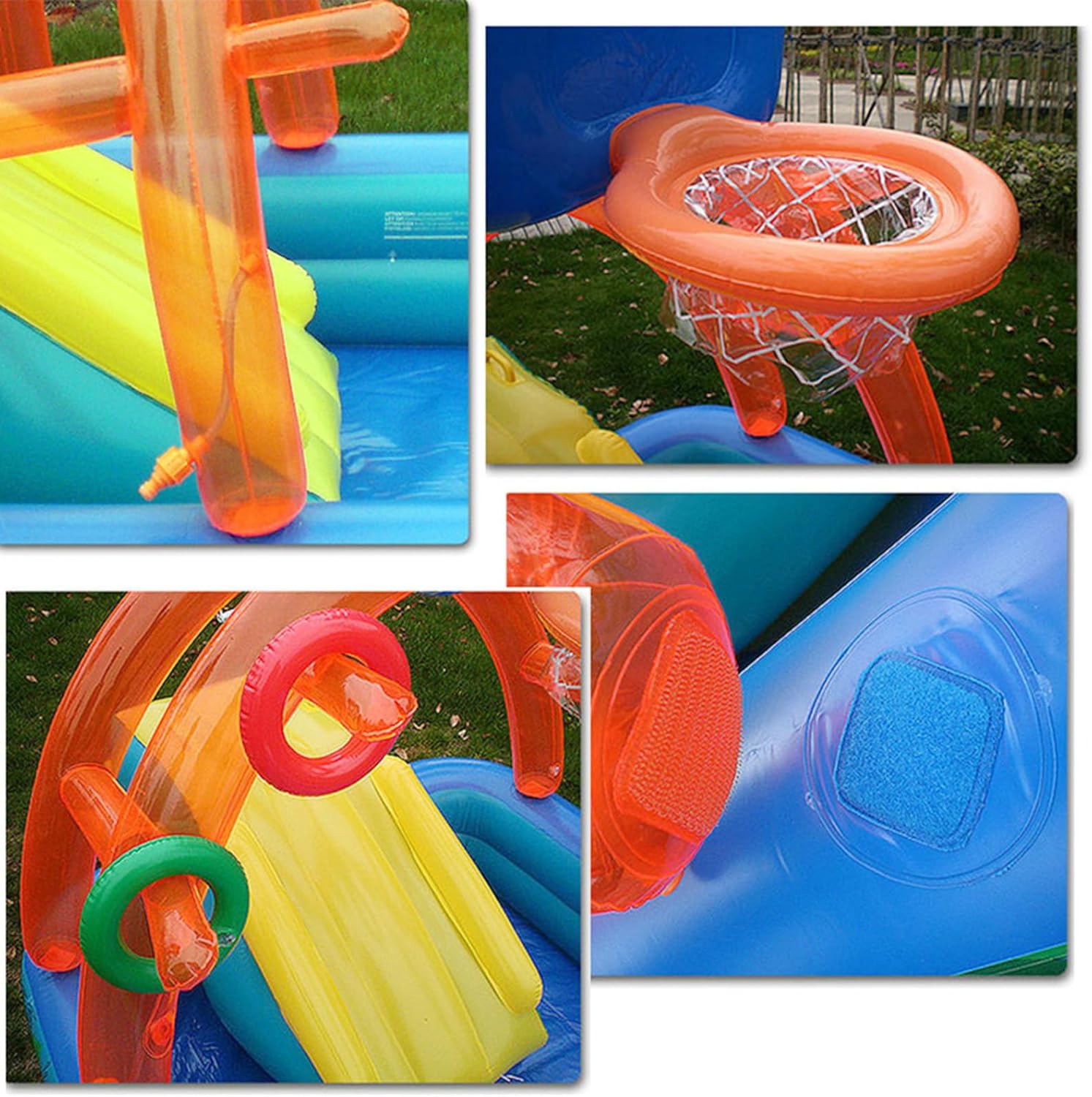 Materiale di alta qualità: il centro giochi gonfiabile è realizzato in PVC di alta qualità. Lo scivolo d'acqua è leggero, robusto, durevole e ha una forte capacità portante. Dimensioni sufficienti: il centro di gioco gonfiabile per bambini di dimensioni sufficienti è un'interessante struttura di gioco creativa, tra cui scivoli, archi a spruzzo d'acqua, lanci ad anelli, attività per gattonare l'acqua, pallacanestro. Comodo da riporre: facile da trasportare. È possibile svuotare la piscina creativa per bambini con scivolo in pochi minuti. Non occupa spazio. Ottima idea regalo: la piscina gonfiabile per il centro giochi è un ottimo regalo per bambini, bambini, ragazze per il giorno del Ringraziamento, Natale, compleanni, feste o occasioni speciali. Ampia gamma di utilizzi: la piscina per bambini è ampiamente utilizzata non solo una piscina, ma anche un parco giochi è adatta per essere posizionata in giardino, cortile, parco acquatico.