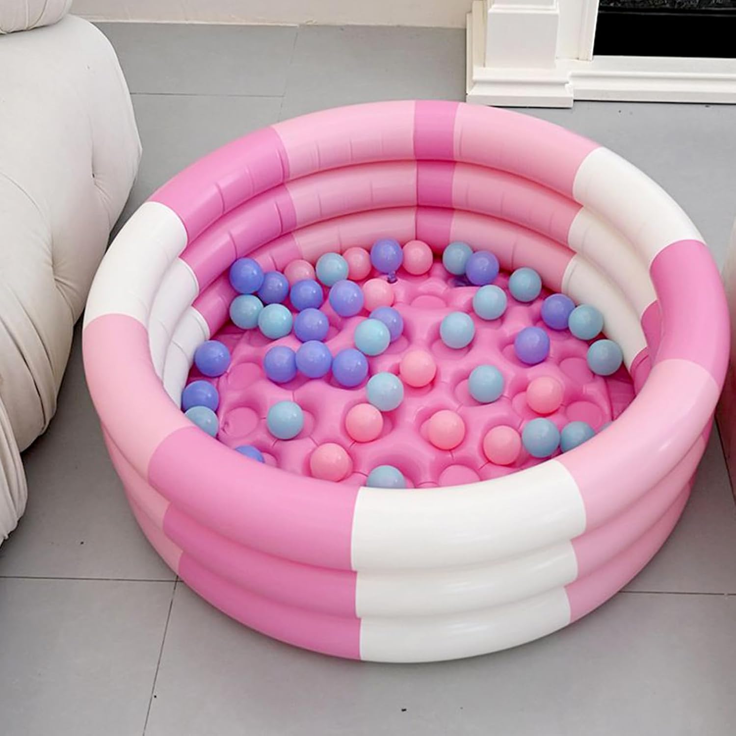 Struttura : Costruita con PVC spesso e resistente, questa piscina gonfiabile presenta ottime caratteristiche anti-strappo e anti-foratura, mantenendo la sua integrità strutturale per un utilizzo ripetuto e sicuro Interazione Dinamica: Aumenta l'impegno dei bambini attraverso il gioco attivo ed esplorativo, funzionando perfettamente con palline da piscina per migliorare divertimento e attività motoria Tonalità Vivaci: Combinazione cromatica brillante e allegra cattura l'attenzione dei piccoli utenti, migliorando il loro divertimento nei giochi d'acqua grazie al bordo arrotondato sicuro che dona maggiore tranquillità nella piscina gonfiabile Momenti Familiari Memorabili: Crea ricordi speciali con i bambini attraverso giochi d'acqua domestici. La geometria rinforzata garantisce sicurezza durante l'utilizzo, mentre le dimensioni bilanciate permettono collocazione in spazi ridotti. Ideale per estati rinfrescanti senza spostamenti. Spazio Acquatico Gonfiabile: Garantisce un'area acquatica sicura e stabile, altamente adatta al comfort dei bambini e pensata per migliorare il divertimento familiare, accogliendo le esigenze dei in attività ricreative domestiche