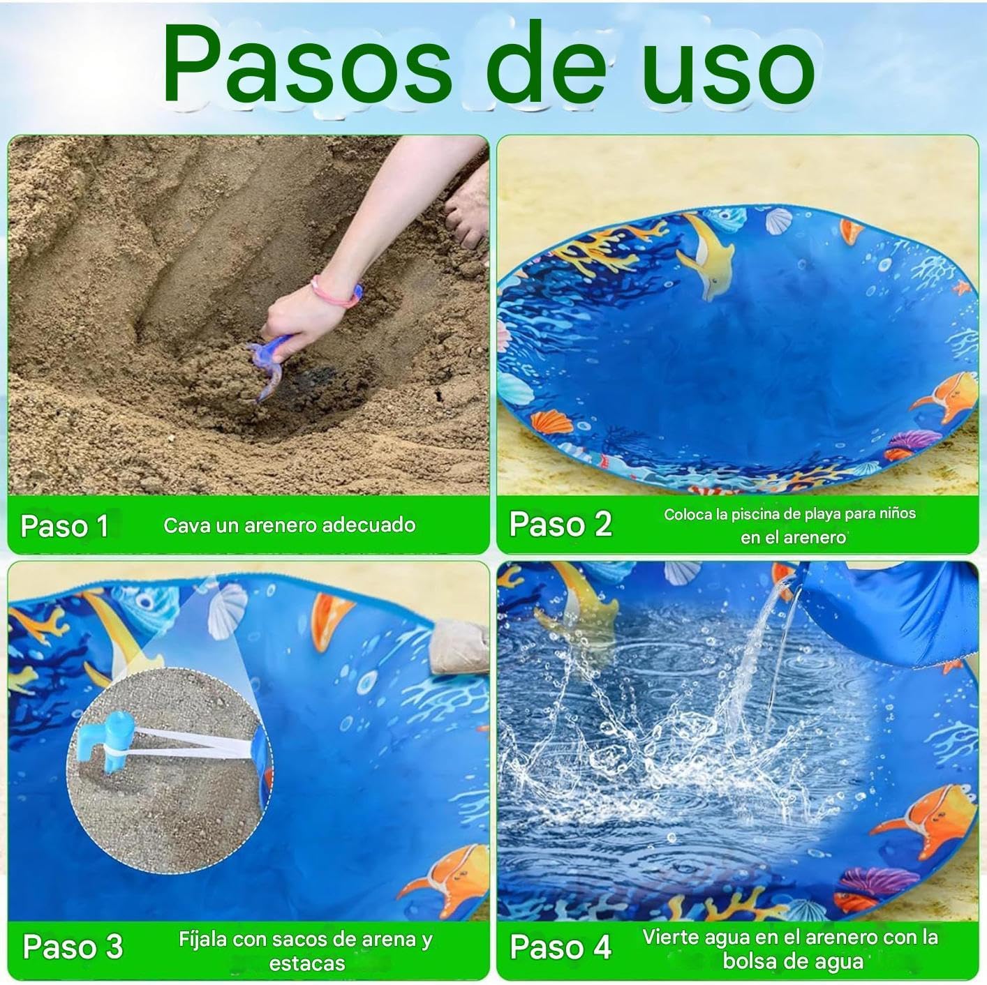 Design senza perdite: non richiede gonfiaggio, questa piscina elimina il rischio di perdite d'aria, garantendo uno spazio di gioco acquatico affidabile e stabile con il riempimento, ideale per la spiaggia o all'aperto. Facile da pulire: è dotato di uno strato impermeabile robusto che respinge i liquidi e permette di ripristinare rapidamente l'igiene con un panno per garantire durata e uso prolungato. Comfort migliorato: realizzato per adattarsi a diversi spazi, integra tappetino a prova di piscina poco profonda in un design 2 in 1, garantendo il massimo divertimento dei bambini durante il gioco o il riposo Gioco a tema marino: disegni vibranti suscitano la curiosità dei bambini, offrendo un ambiente giocoso che rafforza il legame familiare in spiagge o aree di campeggio Montaggio facile e stabilità: questa piscina per bambini da spiaggia con struttura rinforzata e include picchetti di ancoraggio offre un montaggio stabile senza attrezzi aggiuntivi, supporta il riempimento diretto di acqua e ha una borsa per il trasporto per la massima portabilità.