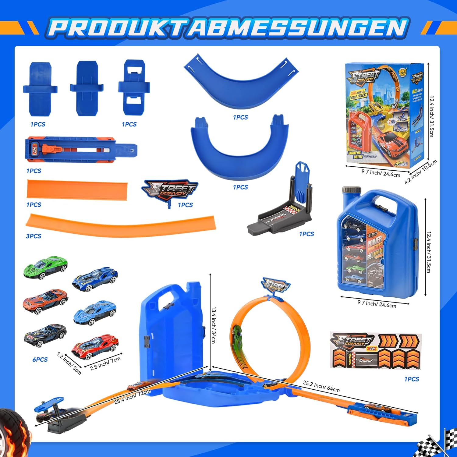 🚗 Pista da corsa 2 in 1: Circuito automobilistico per bambini Design a forma di lattina d'olio, con coperchio trasparente, 6 fantastiche auto da corsa sono allineate e visibili a colpo d'occhio! Tutti gli accessori della pista possono essere facilmente riposti nella "lattina", che è sia un fantastico giocattolo che un pratico strumento di conservazione. Niente più disordine, aiuta i bambini ad abituarsi al riordino ed è una benedizione per le famiglie che vivono in piccoli spazi. 🔄 Double Track Arena: un set che include due piste intercambiabili: un'impegnativa inversione a U + una veloce pista circolare! I bambini possono giocare da soli, ma possono anche invitare i loro genitori o amici a partecipare a un'emozionante corsa, che stimola la coordinazione e la reattività occhio-mano e offre infinite possibilità di gioco. Il dispositivo di lancio a 3 velocità è regolabile, così potrai organizzare una gara intensa ed emozionante in base alle tue esigenze! 🎯 Giocattolo educativo espandibile: i bambini sviluppano il pensiero spaziale e le capacità motorie fini assemblando i circuiti U/cerchio; Migliorano la coordinazione occhio-mano controllando le auto dietro le curve. Le 6 auto in lega possono correre lungo la pista o essere utilizzate separatamente, offrendo due diverse esperienze per ore di divertimento e competizione per i bambini che amano la velocità e l'avventura! 🛡️ Alta qualità e durata: il circuito è realizzato in solida plastica ABS, i collegamenti sono stabili e resistenti agli urti; le 6 auto da corsa sono realizzate in lega, i loro bordi sono lisci e senza bave, sono resistenti agli urti e durevoli, i bambini possono giocare in tutta sicurezza. I bambini a partire dai 3 anni possono giocare da soli a casa o all'aperto e iniziare il loro "viaggio in macchina da corsa" in qualsiasi momento. 🎁 Il regalo ideale: Piste de Voiture è disponibile in tre colori, rosso/giallo/blu, sotto forma di lattina, in una magnifica confezione regalo, perfetta come regalo! È un'auto giocattolo che piacerà sia ai ragazzi che alle ragazze. Che si tratti di un compleanno, della Festa dei bambini, di Natale o di Capodanno, è un regalo a sorpresa che farà urlare di gioia i bambini e rafforzerà i legami emotivi tra genitori e figli.