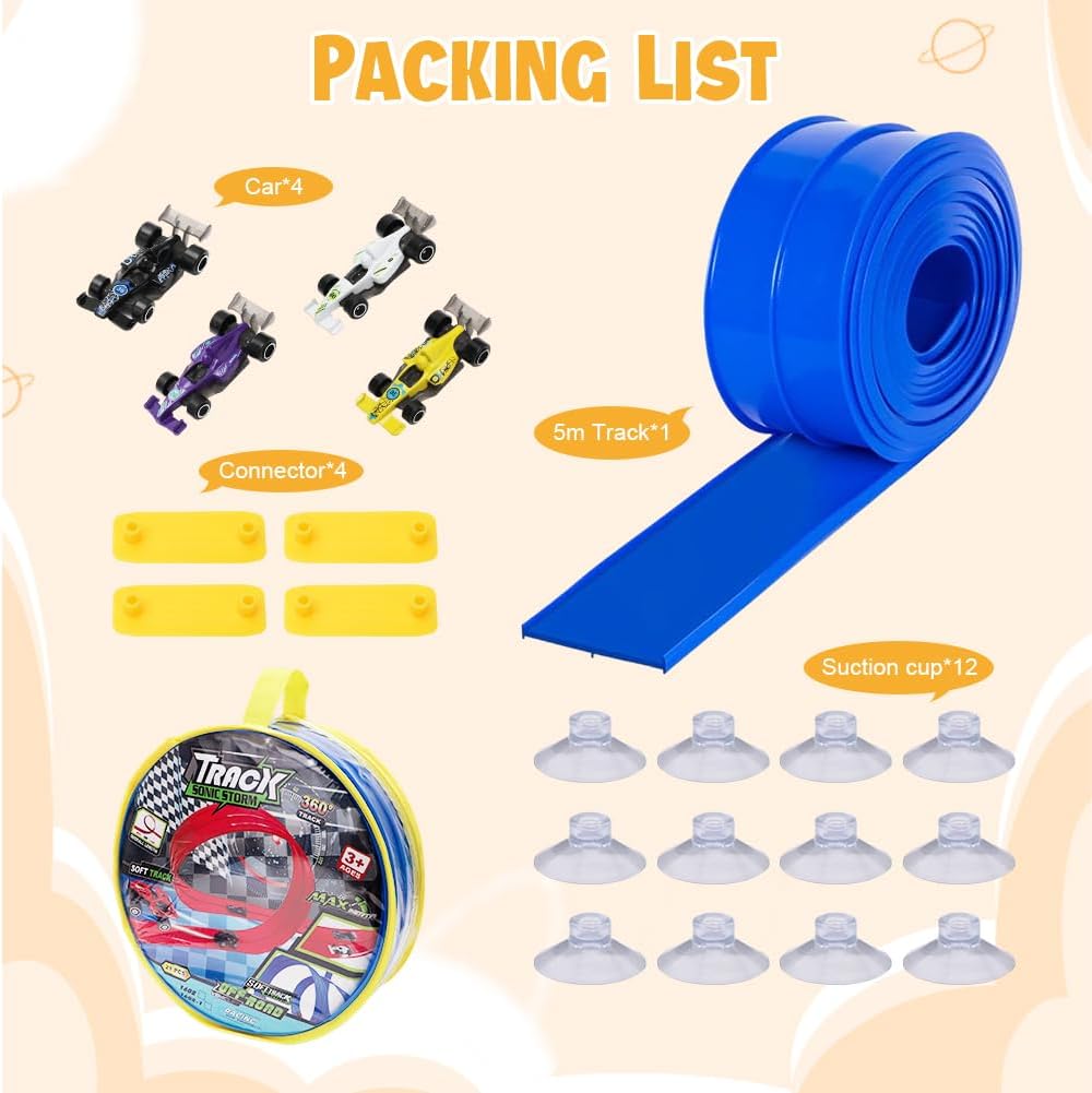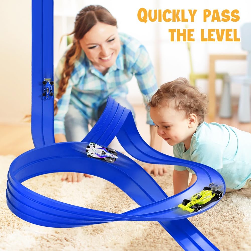Pista da corsa versatile per un divertimento di gioco senza fine: vivi emozionanti avventure di corsa con la nostra autostrada a doppia corsia di 5 metri! Questo kit completo include tutto ciò di cui i piccoli piloti hanno bisogno: 4 macchinine in lega di alluminio di alta qualità, 2 rampe, 2 basi e 4 potenti ventose che garantiscono una presa salda. Ideale per bambini dai 3 agli 8 anni - Perfetto per ore di divertimento creativo Sviluppa la creatività con un design ad anello unico: crea emozionanti anelli, rampe e discese ripide che portano molta azione e divertimento. Grazie alle opzioni di costruzione flessibili, i bambini possono progettare il proprio circuito e creare sempre nuove sfide. Con questo circuito da corsa la fantasia non ha limiti. Non sono necessarie batterie - Divertitevi e basta: il circuito funziona senza batterie né caricabatterie. Facile da installare e utilizzare. Ciò li rende non solo più rispettosi dell'ambiente, ma anche più pratici, poiché non presentano problemi tecnici. I bambini possono percorrere la pista in qualsiasi momento e controllare le loro auto senza tecniche aggiuntive. Promuove lo sviluppo delle abilità: quando costruiscono e corrono in pista, i bambini migliorano la coordinazione occhio-mano, le capacità di risoluzione dei problemi e il pensiero spaziale. Questo circuito da corsa è la scelta ideale per i genitori che vogliono incoraggiare i propri figli in un ambiente divertente senza fare affidamento sul tempo trascorso davanti allo schermo. Idea regalo perfetta per i piccoli amanti delle auto: questa pista da corsa è il regalo perfetto per feste di compleanno, vacanze o altre occasioni speciali. Che sia maschio o femmina, è una sorpresa perfetta per ogni bambino dai 3 agli 8 anni. Con la pratica custodia, riporre e trasportare il circuito diventa un gioco da ragazzi.