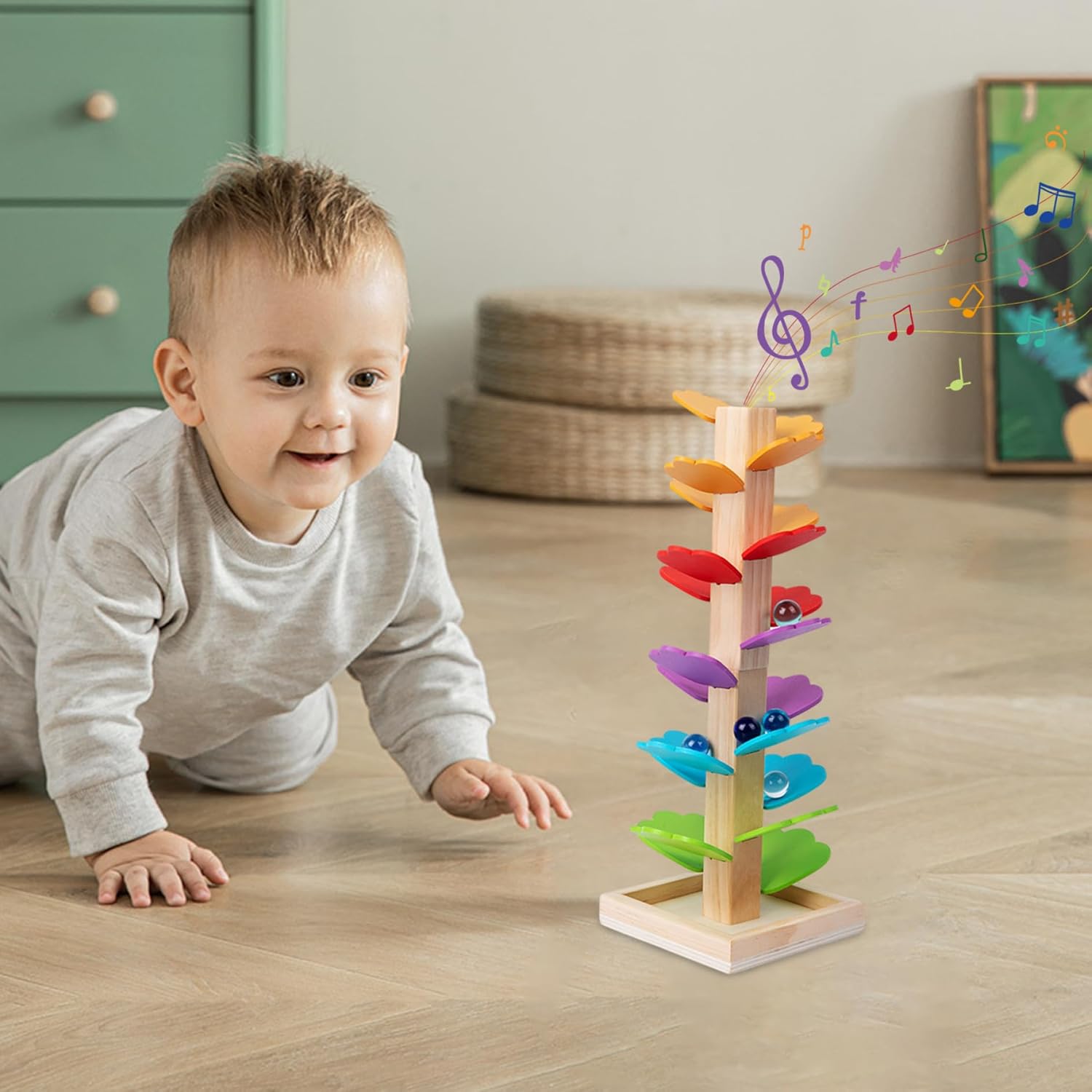 ECOLOGICA E SICURA: Realizzata con materiali atossici e bordi lisci, questa pista per biglie offre un ambiente di gioco sicuro, così i genitori possono essere certi che il loro bambino si divertirà con il giocattolo. Divertimento didattico Montessori: questo albero musicale in legno con pista per biglie è progettato per incoraggiare i bambini a impegnarsi nell'apprendimento pratico e incoraggiare la loro creatività e capacità di risoluzione dei problemi mentre costruiscono ed esplorano il giocattolo che lascia cadere la palla. Costruzione in legno: realizzata in legno di alta qualità, questa pista per biglie è costruita per durare in modo da poter resistere ore di gioco fornendo allo stesso tempo una piattaforma sicura e stabile per i bambini. Elementi sonori interattivi: la funzione Montessori Sound Tree aggiunge una dimensione uditiva al giocattolo, rendendolo più coinvolgente ed educativo poiché i bambini imparano a conoscere causa ed effetto attraverso i toni musicali prodotti dalla palla che corre. Perfetta per tutte le età: sia per i più piccoli che per i bambini più grandi, questa torre a sfera è adatta a bambini dai 4 agli 8 anni, rendendola un compagno versatile e divertente per compleanni, vacanze o altre occasioni speciali.