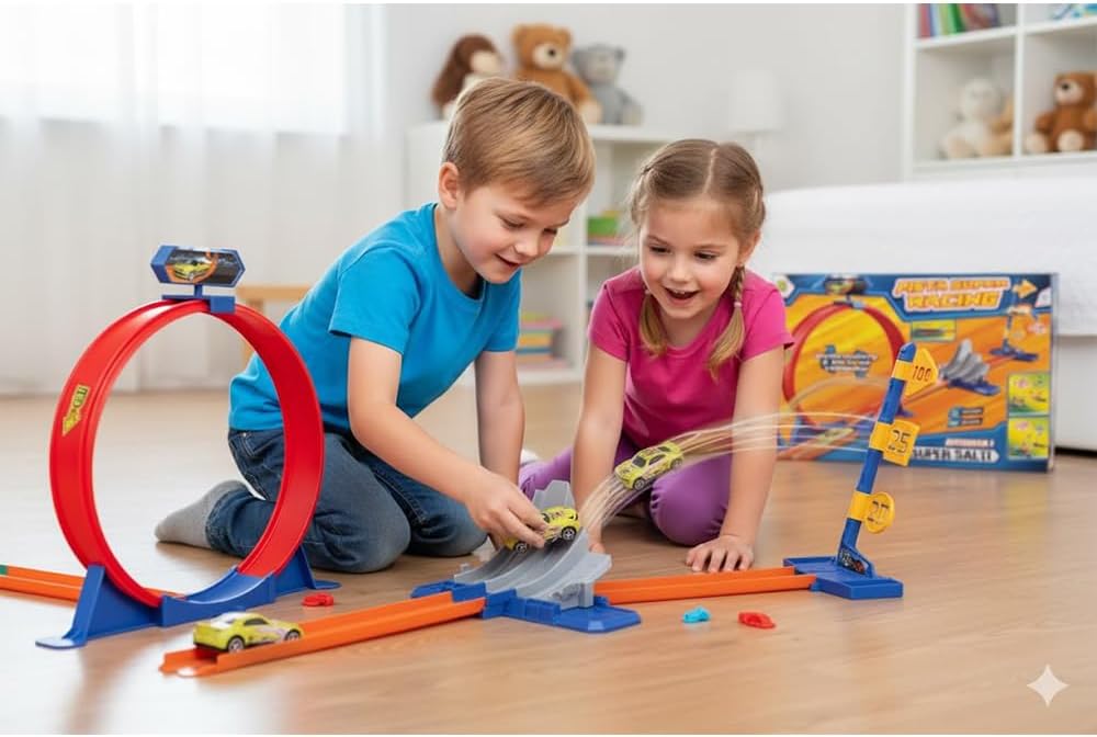 Tipo di prodotto: pista Dimensioni: 29x46 cm (dimensioni prodotto) Funzionamento: manuale Contenuto confezione: pista, auto Età: 3+
