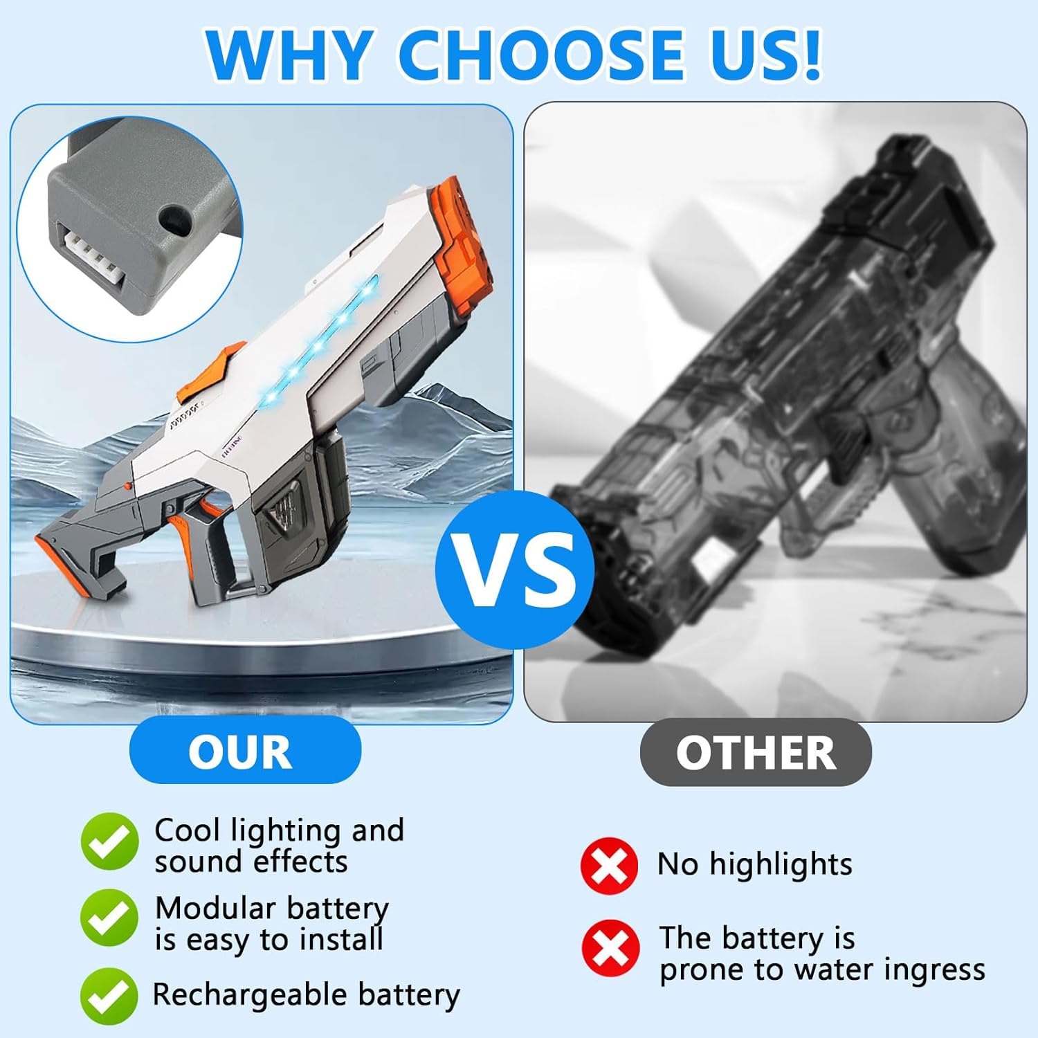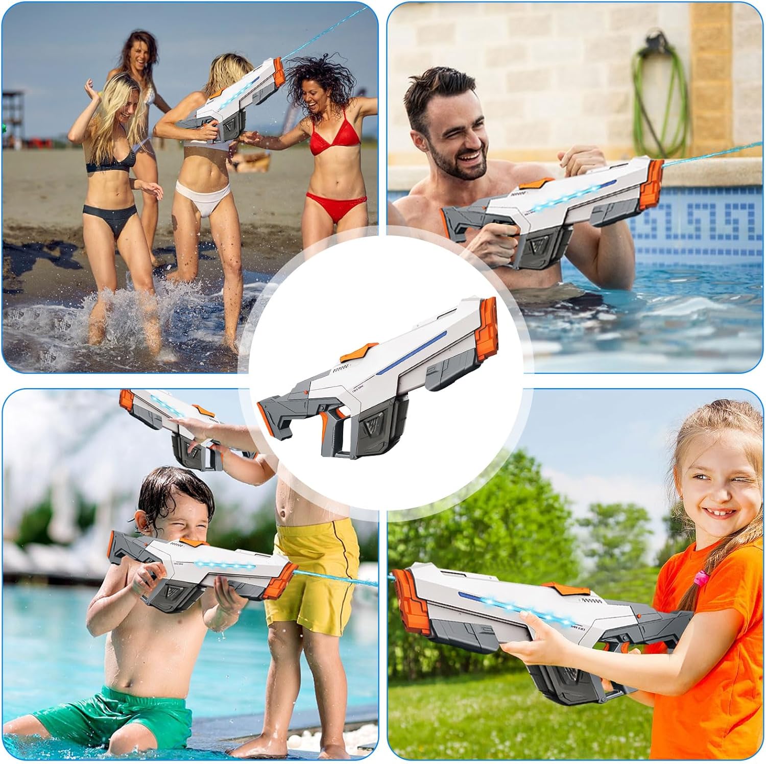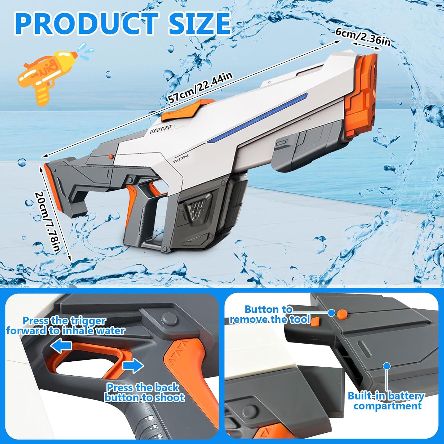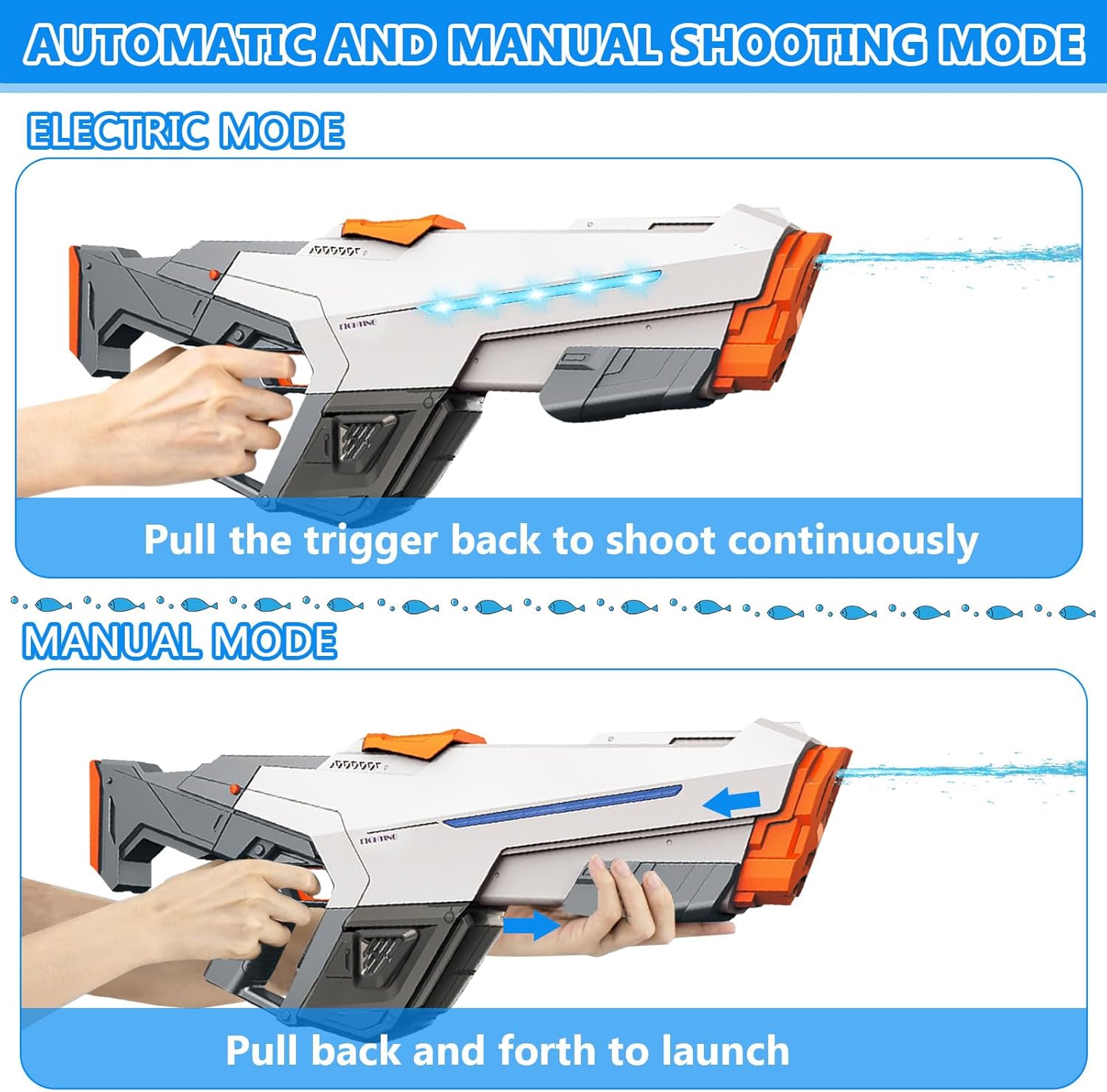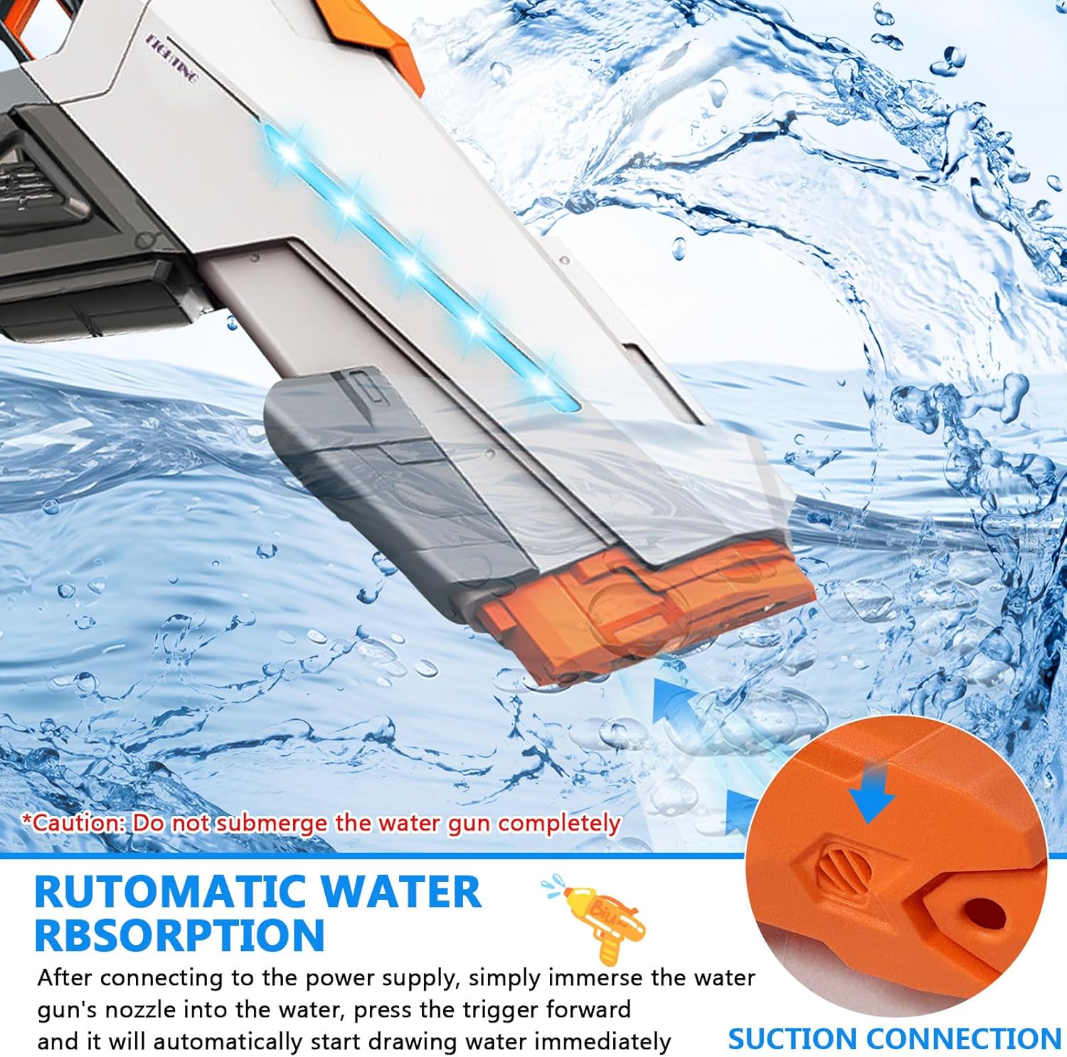 ⚡ 【Pistola ad acqua a doppia alimentazione】 Passa dalla modalità di spruzzo elettrica automatica alla modalità di pompaggio manuale per molteplici stili di gioco! Basta premere il grilletto per sparare proiettili d'acqua continuamente. Quando la batteria si scarica, puoi scattare in modalità manuale e goderti infiniti combattimenti acquatici estivi. 💧【Pistola ad Acqua ad Aspirazione Elettrica】 La pistola ad acqua adotta la funzione di aspirazione elettrica, non è necessario riempire manualmente l'acqua, non è necessario smontarla, molto conveniente. Nuovo e migliorato metodo di iniezione dell'acqua, dopo aver collegato l'alimentazione, basta mettere la testa della pistola nell'acqua, premere il grilletto in avanti e iniziare immediatamente a pompare l'acqua, è possibile riempire d'acqua 15 secondi. 🔋【Pistola ad Acqua Ricaricabile】Supporta la ricarica continua tramite USB, 1 cavo di ricarica USB è incluso nella confezione. La batteria si trova nel vano impermeabile e può essere staccata per la ricarica. Fare attenzione a non immergere completamente la pistola ad acqua poiché ciò potrebbe danneggiare i componenti elettronici! 🔫【Capacità Ultra Grande】La pistola ad acqua elettrica è dotata di un serbatoio dell'acqua di grande capacità da 610 ml e la porta di riempimento dell'acqua è dotata di un connettore universale per bottiglia d'acqua, che consente di aumentare la capacità dell'acqua a piacimento collegando una singola bottiglia d'acqua (bottiglia d'acqua non inclusa). Con una portata massima di 8-10 metri, la pistola ad acqua automatica può aiutarti a cambiare le sorti della battaglia. 🎁【Regalo estivo ideale】Questa pistola ad acqua elettrica ha fantastici effetti luminosi e sonori durante le riprese, il che ti regala un'esperienza coinvolgente in estate. È una pistola ad acqua elettrica ideale per l'intrattenimento all'aperto in piscina estiva, spiaggia, giardino e altri luoghi di intrattenimento all'aperto.