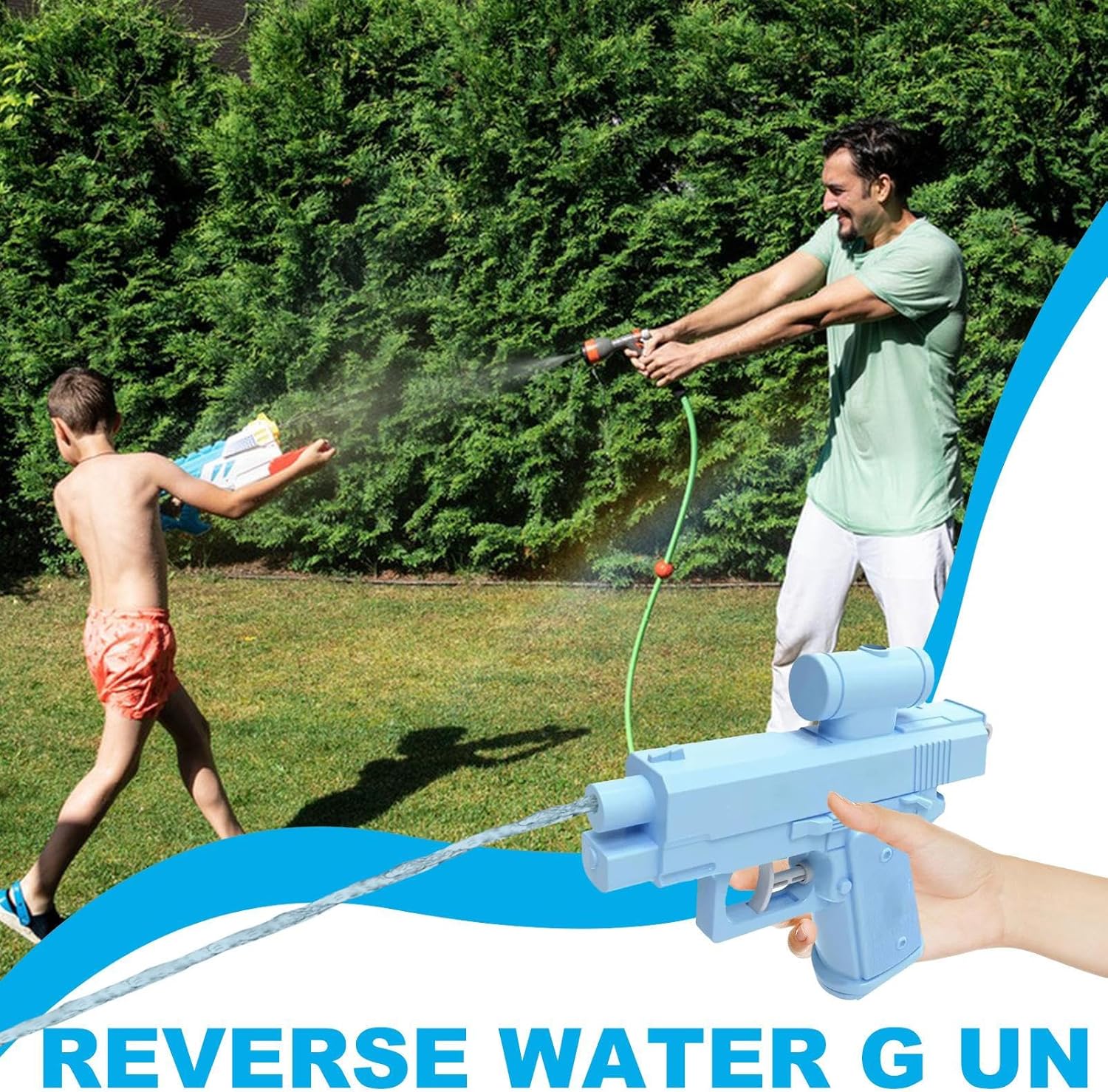 Struttura a spruzzo invertito su entrambi i lati: questo design innovativo consente all'acqua di spruzzare da entrambi i lati, creando una sorpresa acquatica e promuovendo al tempo stesso le interazioni multiplayer con un rapido cambio di direzione per un gioco dinamico. Impugnatura ergonomica: con il suo design inclusivo, questo gioco acquatico è progettato per tutte le età. Portatile ed ergonomico, consente una facile maneggevolezza e un divertimento ottimale in tutti gli ambienti del tempo libero. Spruzzi direzionali: crea sorprese giocose con effetti d'acqua adattabili, perfetti per qualsiasi ambiente. I getti d'acqua direzionati in modo intelligente promuovono il piacere condiviso e la partecipazione sociale dinamica. Nessun assemblaggio richiesto: progettato per la sostenibilità, questo giocattolo a spruzzo d'acqua risparmia acqua con un controllo manuale. Fornisce una pressione dell'acqua moderata e non richiede alcun assemblaggio, garantendo un comfort ottimale e un divertimento ininterrotto fin dal primo utilizzo. Compatibilità all'aperto: potenzia l'intrattenimento familiare con un gioco acquatico progettato per ambienti esterni, inclusi cortili e spiagge, fornendo compatibilità senza pari con stili di vita attivi e facile mobilità per tutte le riunioni.