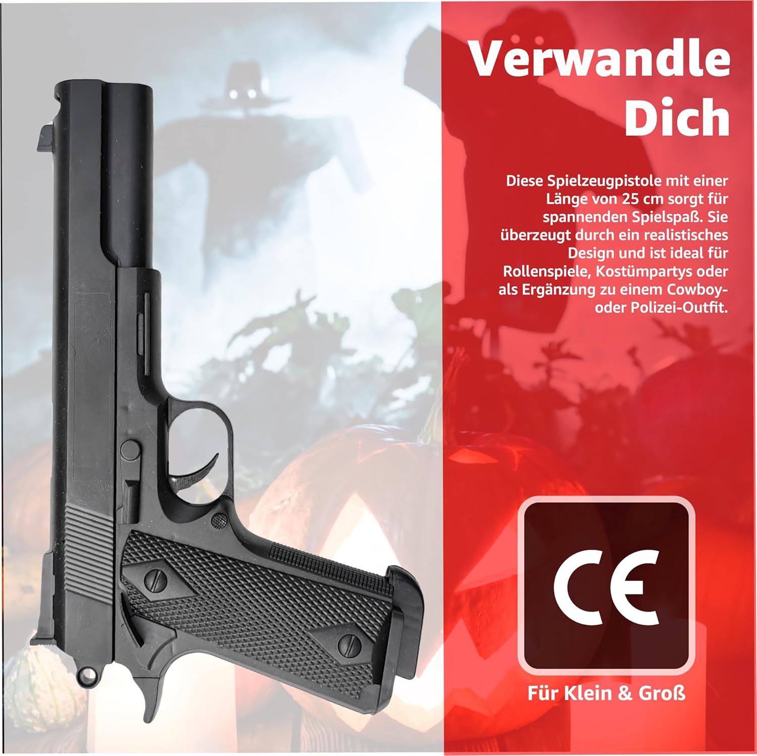 Accessorio perfetto per costumi – Completa outfit come agente segreto, FBI, SWAT, detective, gangster o soldato. Adatto per adulti e bambini – Arma giocattolo unisex per giochi di ruolo realistici, feste a tema o spettacoli teatrali. Leggero e sicuro – Realizzato in plastica senza componenti pericolosi, sicuro per bambini dai 6 anni in su. Design realistico – Aspetto dettagliato per autentici costumi da poliziotto o agente. Robusto e durevole – Materiale di alta qualità per molteplici usi in diverse occasioni. Facile da usare – Facile da trasportare e facile da abbinare a pezzi di costume come fondine o manette. Perfetto per costumi di gruppo e di coppia - Adatto a feste a tema polizia, FBI o gangster. Accessorio indispensabile - Un accessorio essenziale per costumi autentici e giochi di ruolo.