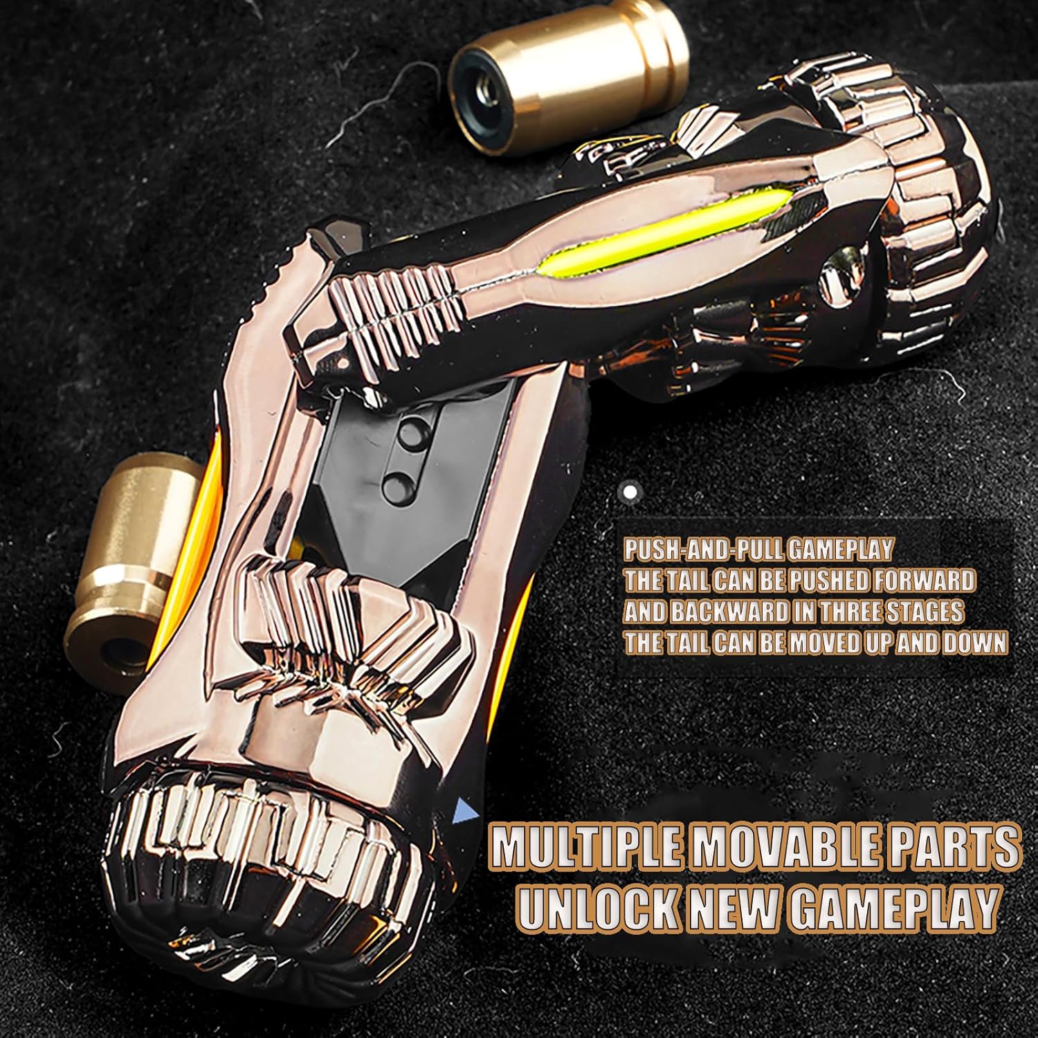 Giocattolo antistress in lega: una pistola giocattolo a decompressione con un solo pulsante. Tirare la coda per rompere la pistola e la cartuccia verrà espulsa automaticamente. Compatto e facile da riporre Funzione di rotazione: rotazione per scattare. La testa e la coda ruotano indipendentemente. Premendo il bottone 1 clic, il bottone 2 attiva la rotazione ad alta velocità Materiali di alta qualità: realizzato in lega e PP, leggero e confortevole. Il corpo principale è dotato di una striscia luminosa luminosa che dona un look fresco di notte. La lavorazione CNC garantisce una superficie liscia e una sensazione confortevole Funzione di stampa: la coda può essere spinta avanti e indietro in tre posizioni. La parte centrale si gira su e giù per alleviare lo stress Migliora la concentrazione e la concentrazione: questo dispositivo portatile non solo riduce lo stress, ma migliora anche la concentrazione. È la scelta ideale per studenti, professionisti e chiunque voglia rilassarsi, aumentare la produttività e migliorare le proprie capacità cognitive
