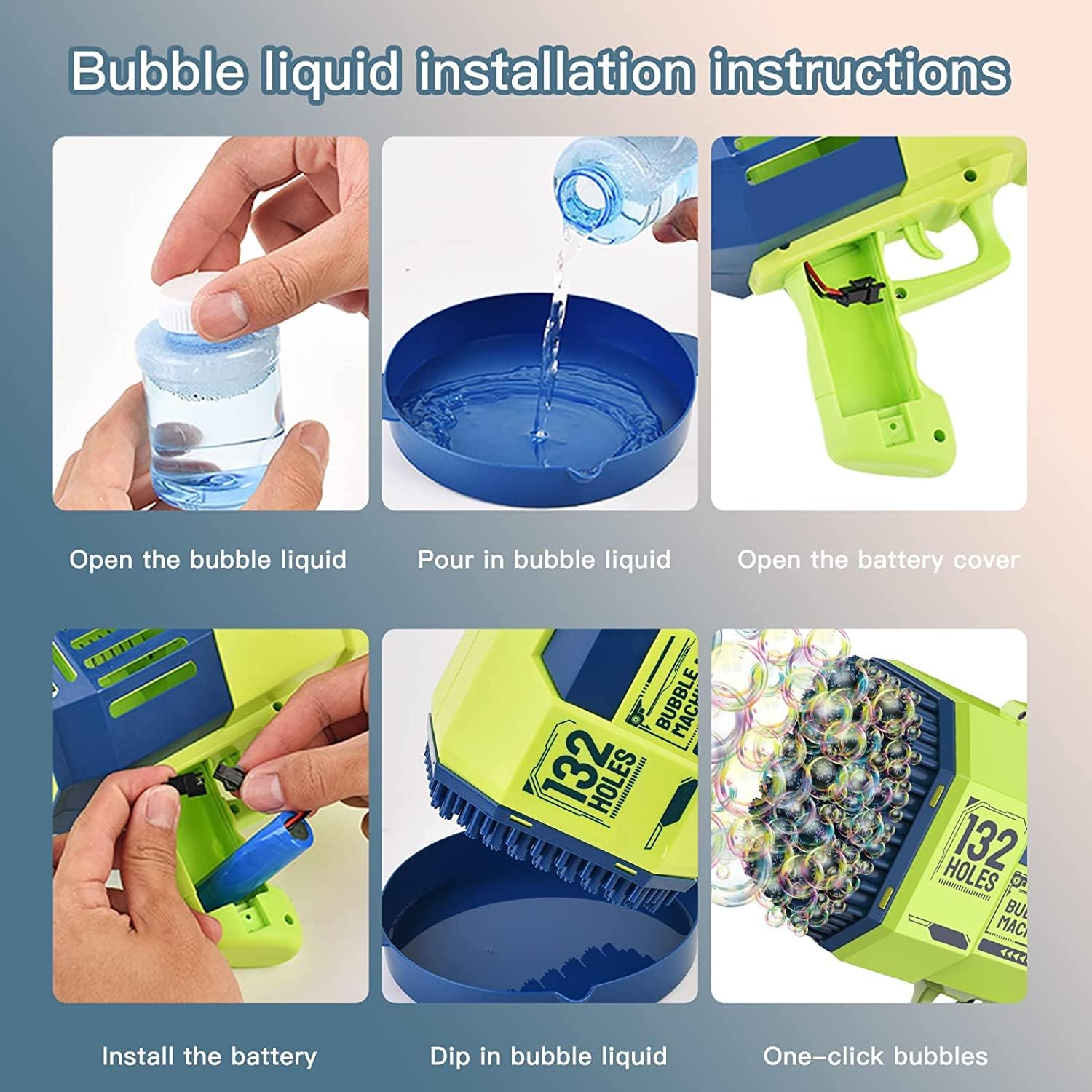 🔫Il set di pistole per bolle include 1 pistola per bolle, 2 flaconi di soluzione per bolle, 1 adesivo, un vassoio per bolle e una batteria ricaricabile. La pistola a bolle apre un mondo di bolle colorato che aumenta il divertimento su spiagge, feste e varie attività all'aperto. 🔫[Soluzione bolle colorate]Sicuro e portatile, facile da usare. La macchina per bolle con luci colorate, basta premere il grilletto e soffia istantaneamente più di 10.000 bolle colorate al minuto, il che è davvero sognante e sorprendente. 🔫[Modalità ventola] La macchina per bolle da esterno realizzata in plastica ABS, sicura, durevole, leggera e senza perdite. Viene fornito con una batteria ricaricabile da 2200 mAh, quando fa molto caldo, trasformalo in un piccolo ventilatore. 🔫[REGALO IDEALE]Il creatore di bolle è un regalo ideale per i bambini in ogni occasione. Come feste a tema bolle, intrattenimento, gite in campeggio, spiagge, feste di compleanno, carnevali, matrimoni, baby shower, Halloween, barbecue, Natale e molto altro ancora. 🔫[Suggerimenti caldi] Si prega di utilizzare una soluzione speciale per bolle e non sapone fai-da-te, il primo può creare molte bolle, è molto importante perché usare il sapone non ha lo stesso effetto; 2) Si prega di caricare completamente almeno 4 ore prima dell'uso; 3) Non applicare troppa soluzione di bolle di sapone, per evitare che le bolle si uniscano, attaccare solo un po' di soluzione, potrebbe far uscire migliaia di bolle dall'uscita della macchina. Tradotto con www.DeepL.com/Translator (versione gratuita)