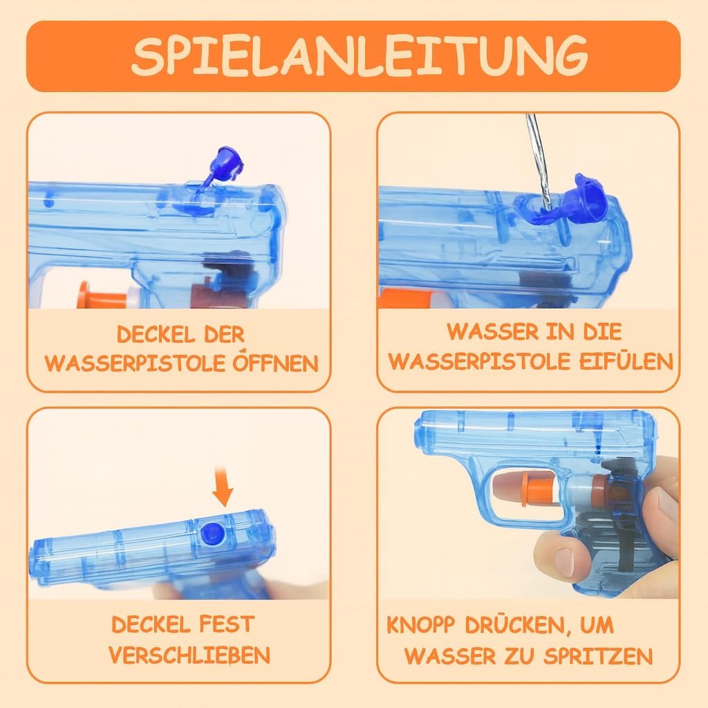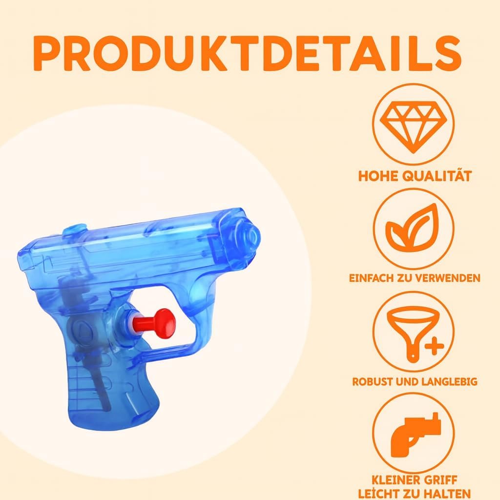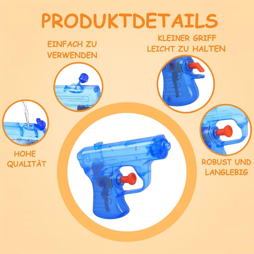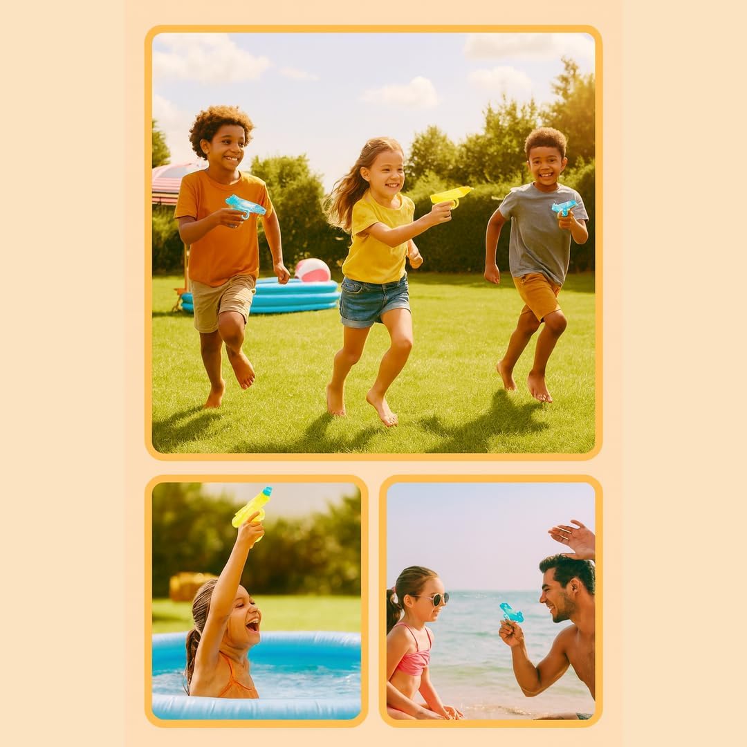 💦 Compatte e maneggevoli: circa 11 cm, presa sicura per le mani dei bimbi; riempi, mira e spruzza – getto regolare per divertimento immediato. 🌈 Colori vivaci: rosso/giallo/blu/verde ben visibili su prato o sabbia; look energico perfetto per compleanni e feste estive. 🛡️ ABS resistente: leggero e anti‑urto, circuito interno fitto per limitare perdite; spigoli arrotondati per un gioco più sicuro. 🚿 Riempimento veloce: tappo a vite pratico e affidabile; impugnatura ergonomica per spruzzi stabili anche a uso prolungato. 🎁 Idea regalo: set da 4 per squadre e famiglie; ottimo come regalino party, premio di classe o dotazione da campeggio estivo.