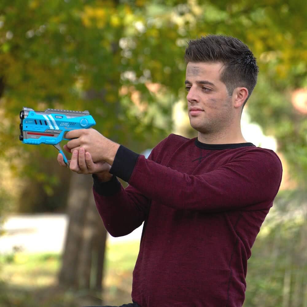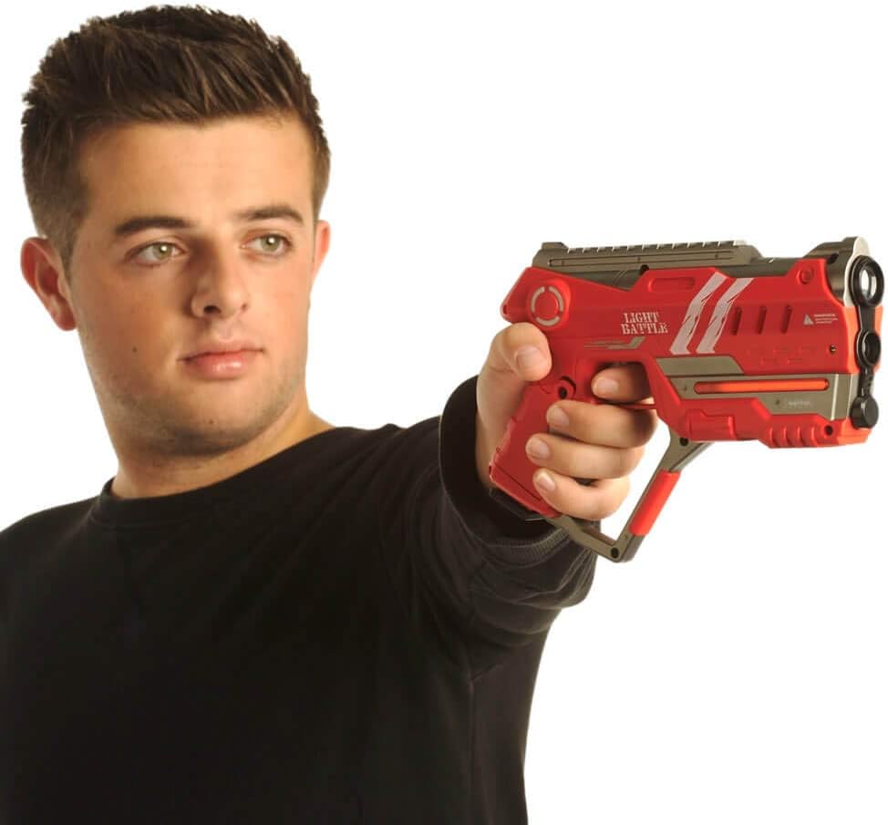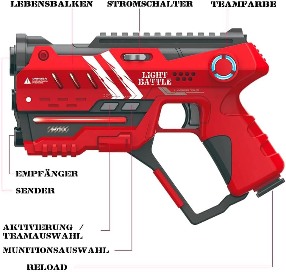 Light Battle Connect: un cannone laser Light Battle Connect può essere collegato a un giubbotto Light Battle Connect. Questo ti colpirà sul giubbotto invece che sulla tua arma. Quando l'arma è collegata a un giubbotto, comunicano tra loro. Trascorrere tutta la tua vita sul giubbotto disattiverà il cannone laser collegato. Funzionalità anti-cheat unica: questi nuovi fucili anti-cheat Light Battle Connect hanno una caratteristica unica che rende impossibile imbrogliare. Laddove è possibile ripristinare altri marchi di cannoni laser, ciò non è più possibile con questi cannoni a causa dell'esclusiva funzione anti-cheat. Il gioco laser con pistole anti-cheat da battaglia leggera è quindi molto più divertente e stimolante. Gioco Lasergame Light Battle: puoi giocare a giochi laser con un numero illimitato di giocatori distribuiti su un massimo di 4 squadre. Prova ad eliminare il tuo avversario. Quando tutte le vite del giubbotto del tuo avversario sono scomparse, vinci! Determina la tua tattica scegliendo uno dei 4 tipi di munizioni. Ogni tipo di munizione ha le proprie prestazioni di fuoco. Giocattolo laser di sicurezza al 100%: il giocattolo laser Light Battle utilizza luce infrarossa innocua e invisibile, rendendolo sicuro al 100%. Dall'arma non provengono raggi laser pericolosi. Tutti i prodotti Light Battle sono marcati CE e rispettano le normative europee sulla sicurezza dei giocattoli. Il set del gioco laser viene fornito con un manuale completo in olandese, inglese, tedesco e francese. Garanzia - Una garanzia di rimborso di 30 giorni si applica alle persone che non utilizzano i nostri prodotti a fini commerciali.