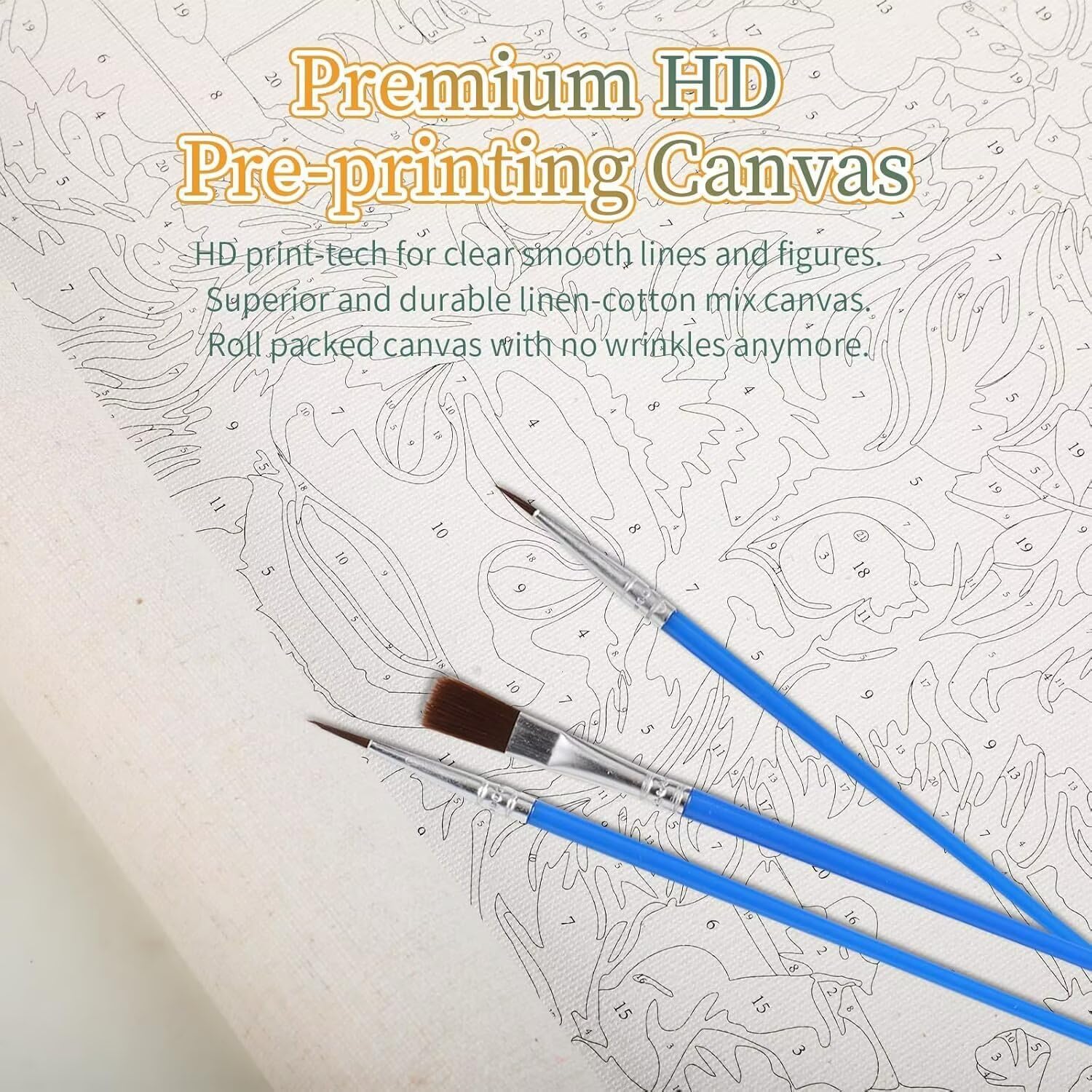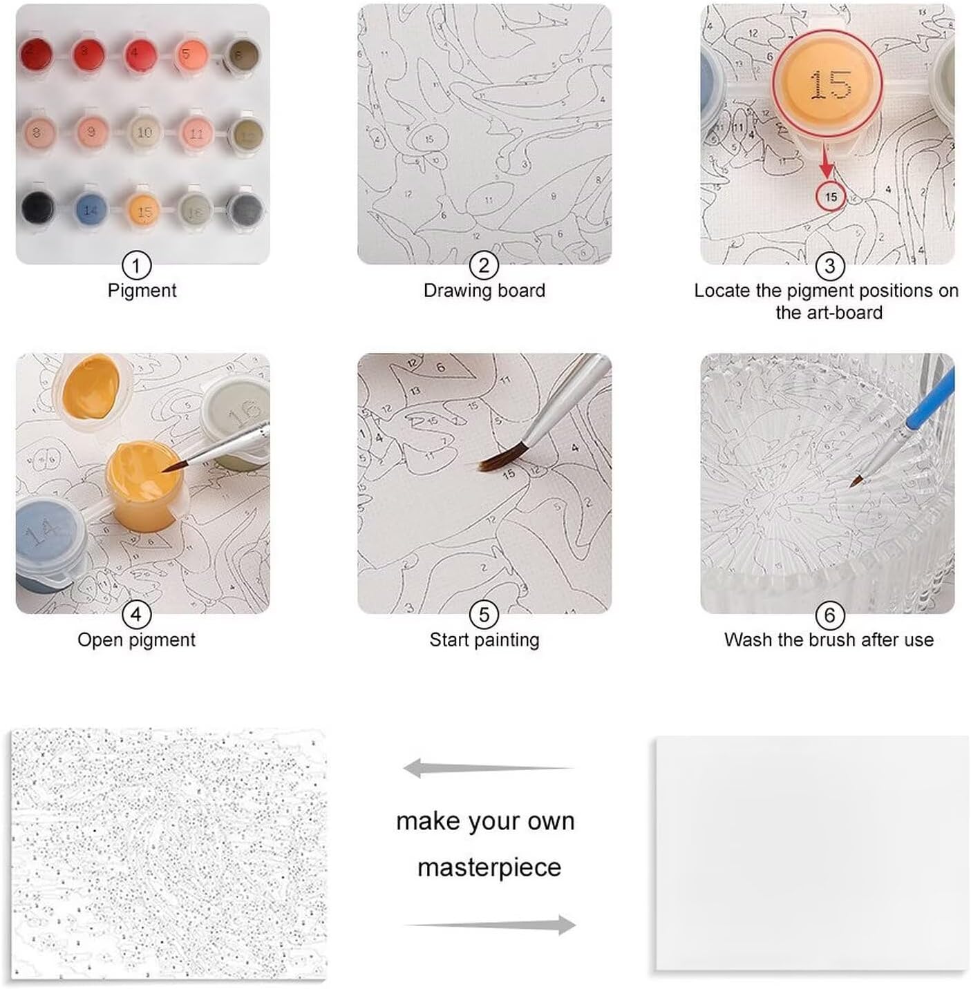【CANVAS & PINTURE DI QUALITÀ PREMIUM】: Sperimenta la pittura superiore con la nostra tela ad alta densità, pre-stampata con numeri e linee chiare. Le nostre vernici acriliche ecologiche sono luminose e sufficienti per una copertura completa, garantendo un processo di verniciatura fluido e piacevole. 【KIT DI PITTURA COMPLETO】: Tutto quello di cui hai bisogno è incluso: una tela d'arte testurata pre-stampata, un set di vernici acriliche di alta qualità, 3 pennelli di diverse dimensioni e istruzioni facili da seguire. Nessun strumento aggiuntivo o miscelazione richiesta, basta aprire e iniziare a creare! 【FACILE E DIVERTENTE PER TUTTE LE ETÀ】: Perfetto per principianti e artisti esperti! Questo kit di vernici da numeri fornisce un'attività rilassante e coinvolgente che aiuta a ridurre lo stress, migliorare la pazienza e migliorare la coordinazione mano-occhio. Ideale per bambini, adolescenti e adulti. 【REGALO PERFETTO E DECORAZIONE DI CASA】: Un regalo pensato e unico per compleanni, Natale, Festa della Madre o qualsiasi occasione speciale. Una volta completato, il tuo capolavoro può essere fieramente esposto come un mozzafiato pezzo di arredamento domestico, aggiungendo un tocco artistico a qualsiasi stanza. 【BOOST CREATIVITÀ E RILASSAMENTO】: Scarica il tuo artista interiore e goditi i benefici terapeutici della pittura. Questo kit di pittura a olio fai da te offre un modo meraviglioso per rilassarsi, concentrare la tua mente e creare qualcosa di bello con le tue mani. Un hobby gratificante per il divertimento personale o la condivisione con i propri cari.