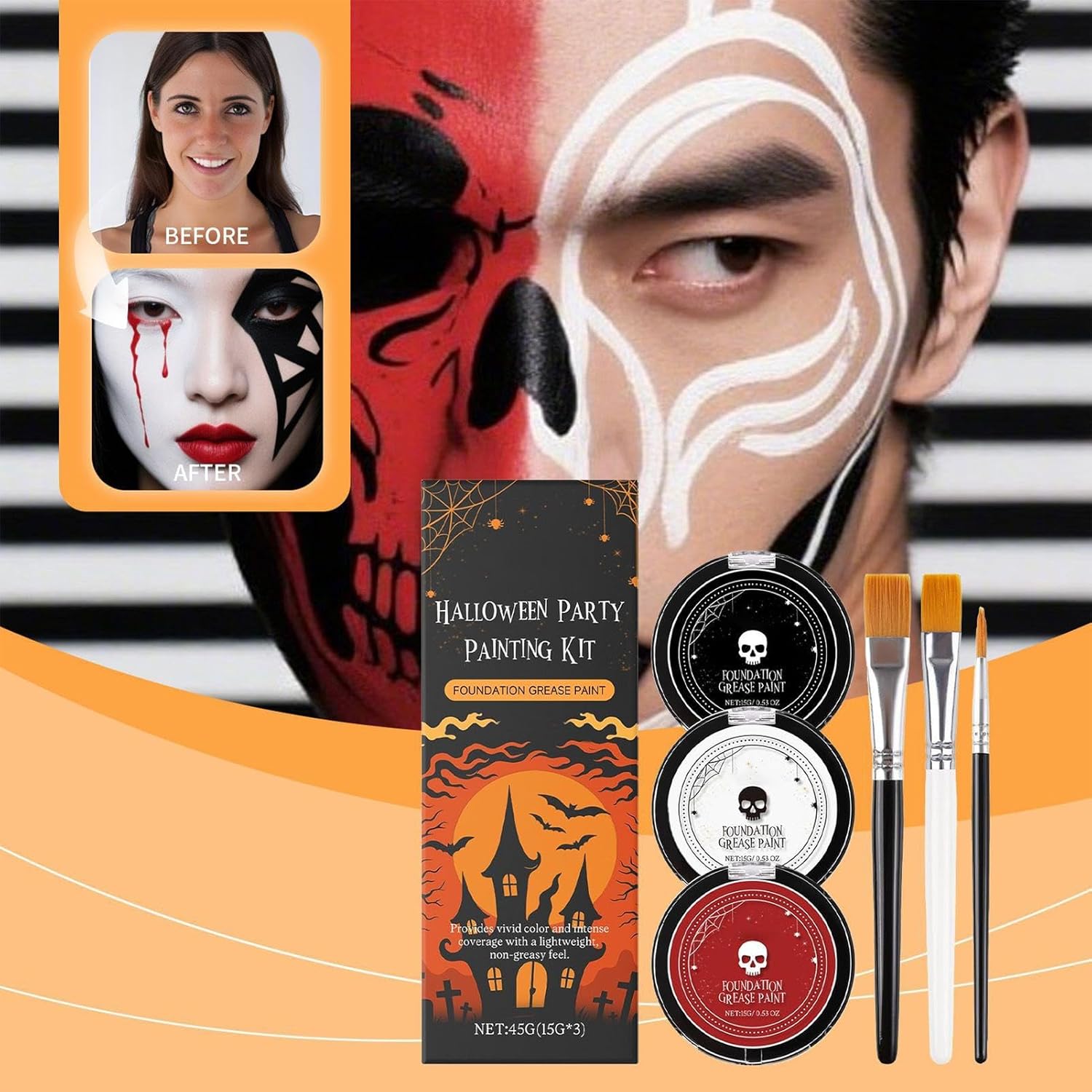 Adatto a tutti: Soluzione creativa per performance teatrali, feste Halloween ed eventi tematici, supporta la fantasia con utilizzi diversificati in occasioni speciali per bambini e adulti, garantendo esperienze coinvolgenti Formula Non Irritante: Tecnologia delicata a base di ingredienti cosmetici certificati garantisce sicurezza anche per pelli sensibili, riducendo disagi durante l'utilizzo prolungato ad eventi Halloween. Resistenza Giornaliera: Pigmenti puri forniscono colore vibrante in un'applicazione per temi gotici e vampiri. Prestazione affidabile resistente a sbavature e scolorimento tutto il giorno. Applicazione Facile: Realizza design perfetti per Halloween con pennello, spugna o dita, e rimuovi senza sforzo usando un normale detergente con risciacquo per una pulizia immediata Soluzione Completa: Bianco con finitura opaca crema-polvere, nero e rosso in texture cremosa . per look quotidiani e creativi festivi. Tre pennelli garantiscono perfette.