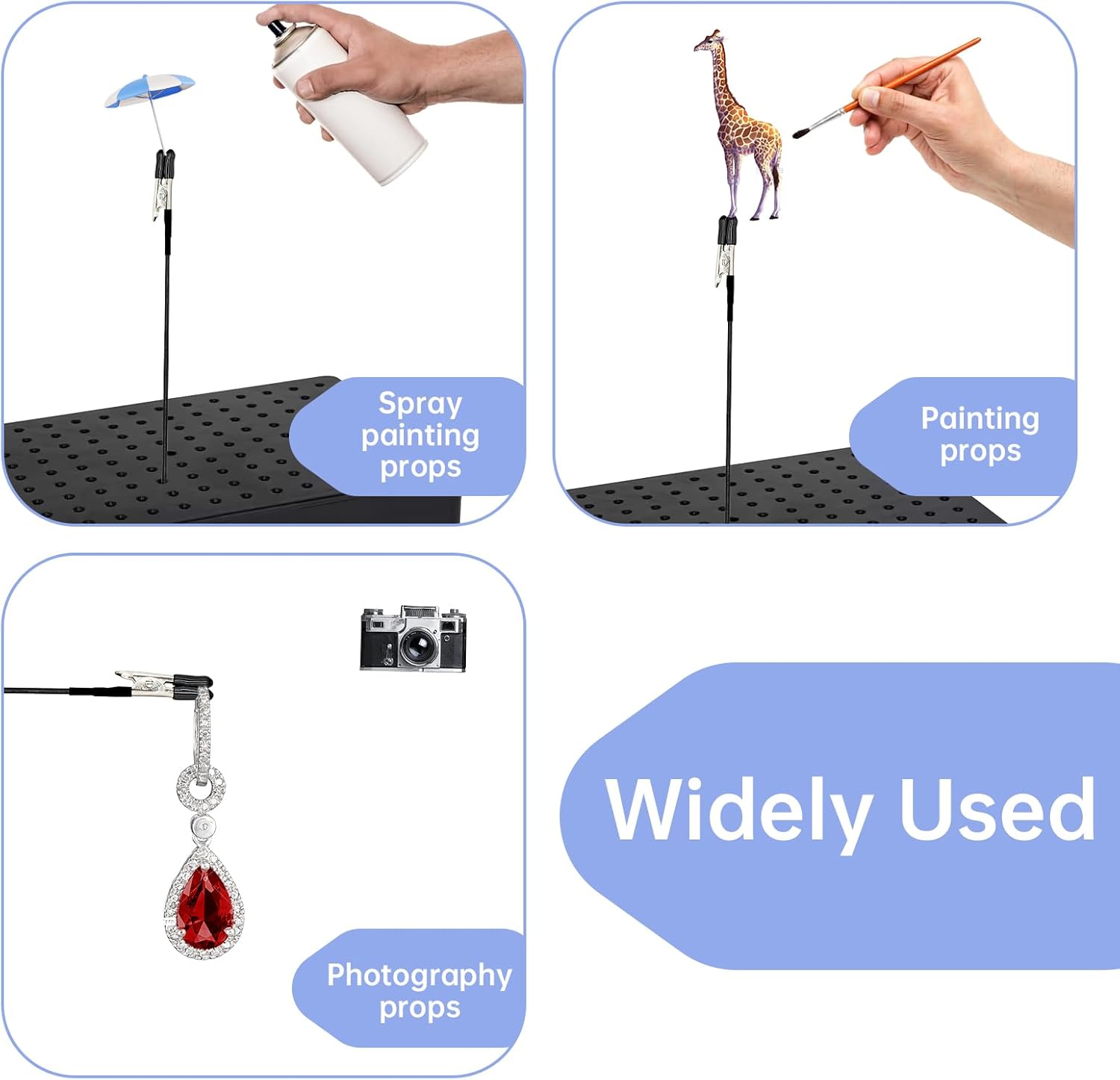 L'asta flessibile può aiutare a regolare le parti del modello a qualsiasi angolo, rendendo più facile dipingere piccole parti del modello A per gli appassionati di piccoli modelli del mondo per dipingere o aerografare piccole parti di modelli Le clip sono ideali per contenere piccole parti da dipingere o airbrus Perfetto per dipingere piccoli pezzi di modello. Un ottimo strumento di modellazione È possibile posizionare comodamente i bastoncini sulla base della clip