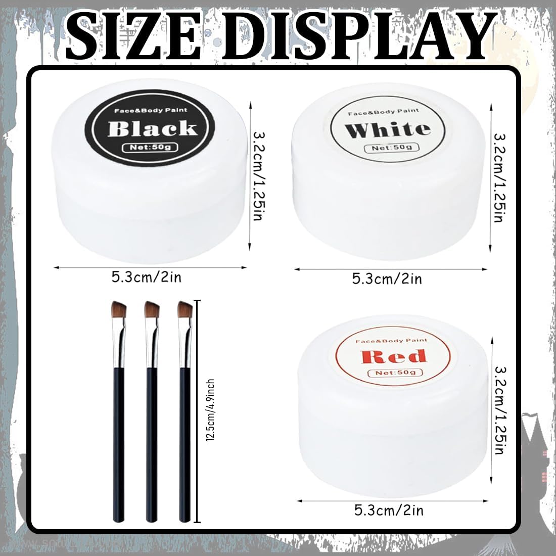 【Set per il trucco per Halloween】il nostro set di trucco per bambini contiene 3 colori nero, bianco e rosso, il set di trucco per Halloween può essere utilizzato direttamente o miscelato con altri colori, perfetto per la pittura del corpo e del viso. 【Alta Qualità, Confortevole, Delicato Sulla Pelle】La trucchi halloween nostra pittura per il viso è realizzata con materiali di alta qualità, è facile da colorare, ha una consistenza morbida e delicata, ha un elevato potere coprente e può coprire acne, lentiggini e altre imperfezioni. La spazzola inclusa ha fibre sottili e non perde facilmente peli. Non secca il viso e può essere steso facilmente su tutto il viso, garantendo un trucco sicuro e a lunga tenuta. Si consiglia di effettuare un test allergico dietro l'orecchio prima dell'uso. 【Facile Da Usare e Da Pulire】Pulisci il viso e applica una crema idratante prima dell'uso. La nostra vernice per il viso è facile da usare e può essere applicata sulla pelle con una spugna, un pennello o con la punta delle dita. Make up halloween Dopo aver completato il trucco, si consiglia di utilizzare polvere sciolta per fissare il trucco per ottenere risultati migliori! I pigmenti si rimuovono facilmente con acqua tiepida e sapone. Se c'è ancora del pigmento, usa uno struccante per rimuoverlo. 【Adatto a tutte le pelli】Il set di trucchi è adatto a bambini e adulti di tutti i tipi di pelle ed è realizzato con ingredienti per il trucco sicuri e di alta qualità che sono vibranti, di lunga durata, non si seccano e non si screpolano. 【Molteplici usi】Crea il look perfetto per le tue feste in costume di Halloween, clown COSPLAY, feste di compleanno, trucco SFX, spettacoli teatrali, feste in costume a tema, spettacoli teatrali e altro ancora!
