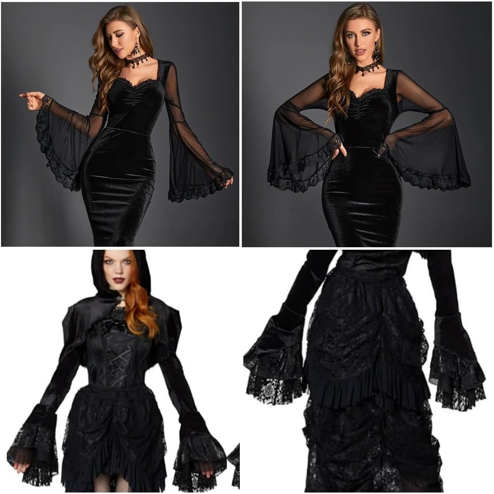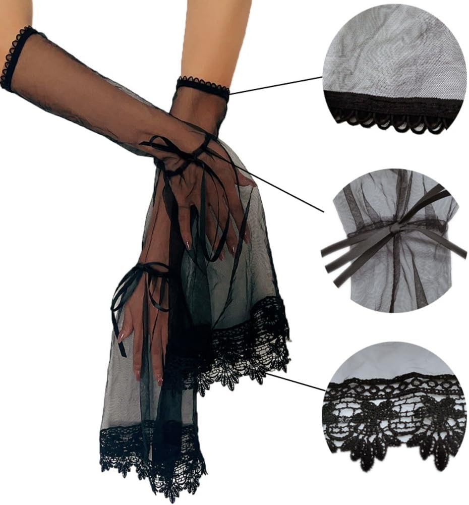 Contenuto della confezione: riceverete un paio di polsini lunghi 65 cm. Classiche maniche in pizzo nero realizzate in pizzo di alta qualità, leggeri, polsini larghi hanno una buona sensazione di fluidità. Morbido e comodo da indossare, viene fornito con un nastro per legare i fiocchi. Pizzo Jabot può essere combinato con reggiseno spaghetti, top e abiti. Perfetto con un costume da strega, costume in stile gotico, costume da burlesque, costume da mago, costume da vampiro, costume da regina malvagia, vestito fantasia e così via. Le maniche in tulle sono adatte per Halloween, fotografia, eventi serali speciali, feste in costume, feste in maschera, carnevale, balli, feste, tutti i giorni e così via. Fake Sleeves Ideale come regalo per le tue amiche, sorelle o figlie per trascorrere un bel tempo con loro.