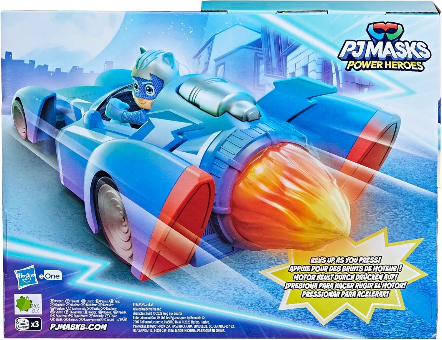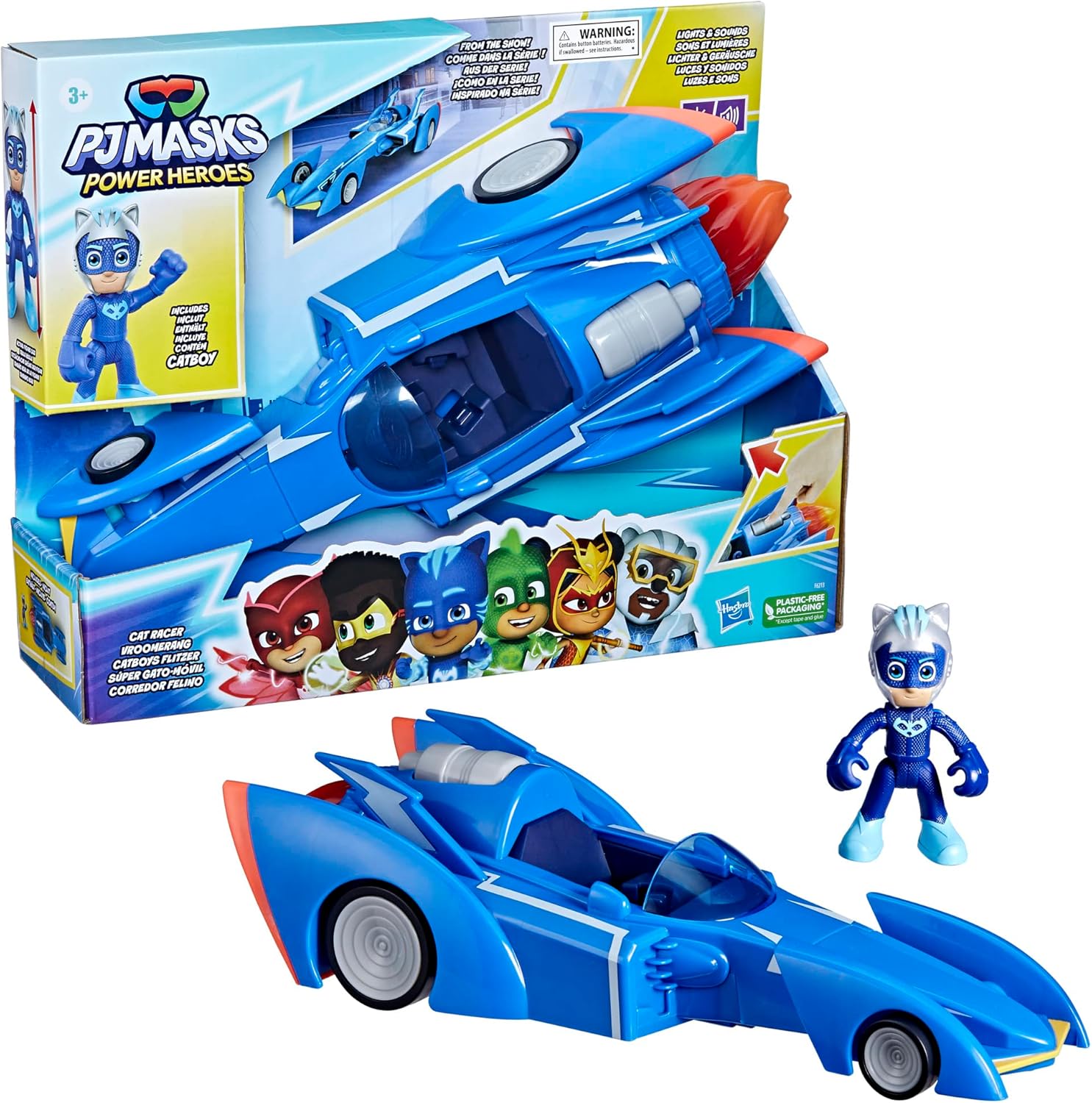 FLAMMA DI PROPULSORE-FUSATA CHE SI ILLUMINA: La fiamma traslucida gigante del propellente razzo si accende quando si preme il pulsante motore grigio sul retro del veicolo BRUTTI DEL MOTORE A OGNI VOLTA CHE SI SOPRA: Più i bambini premono il pulsante, più i rumori del motore si intensificano: avviamento, motore che imballa, super accelerazione in modalità Yoyo-rapido Include una figura articolata di Yoyo Yo: questo super bolide pigiama è venduto con una figura snodata da 7,5 cm di Yoyo in abbigliamento da corsa. La figura può sedersi nella cabina di pilotaggio del veicolo. SUPER REGALO PER BAMBINI DA 3 ANNI: Questo giocattolo Pigiama è un regalo fantastico per ragazze e ragazzi che amano i carrelli e i giocattoli dei supereroi