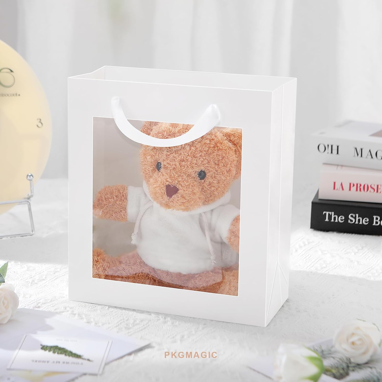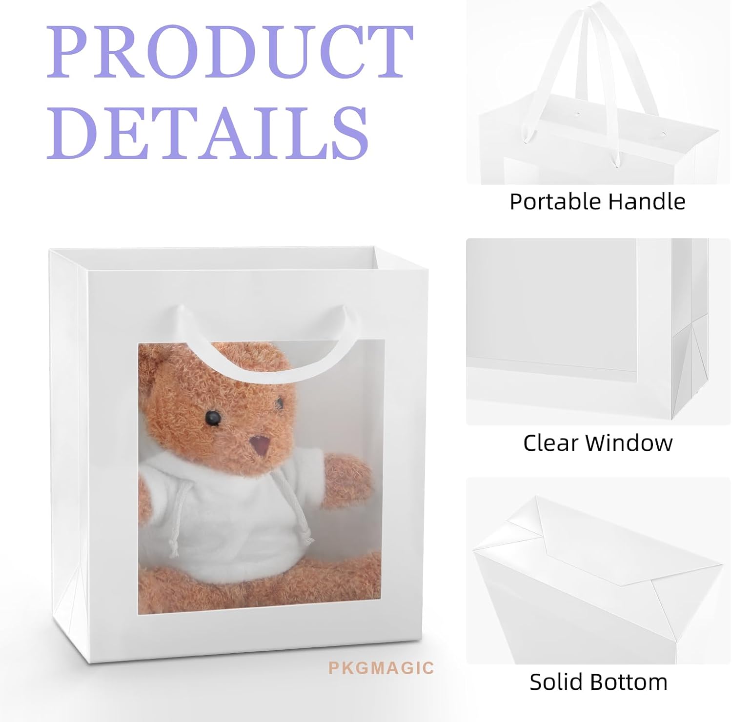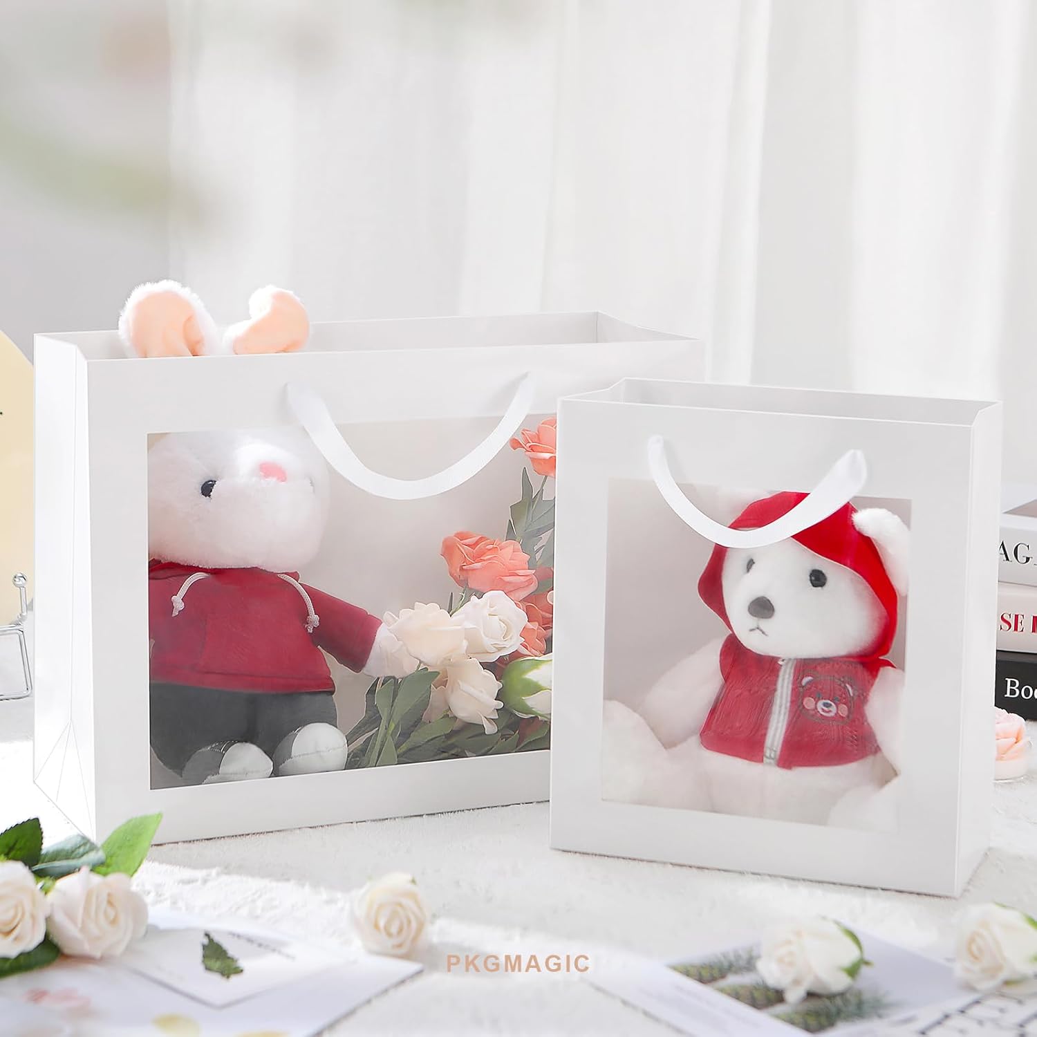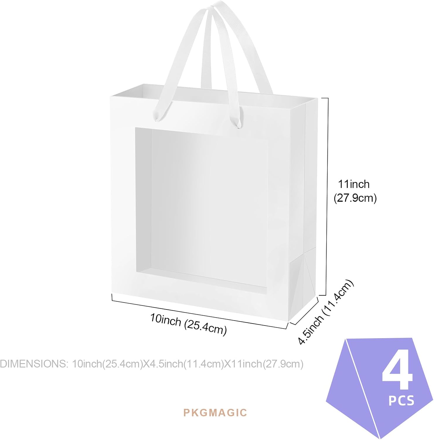 Dimensioni: i sacchetti regalo bianchi misurano: 25,4 x 11,4 x 27,9 cm (10 × 4,5 × 11 pollici), adatti per trasportare vari oggetti come mazzi di fiori, bomboniere, snack, giocattoli e altro ancora. La confezione include: sacchetti regalo trasparenti da 4 pezzi con manici. I manici e i sacchetti regalo separatamente per evitare che si pieghino durante il trasporto Materiale: Realizzati con cartone avorio metallizzato e manici scanalati, carta con finitura lucida, questi sacchetti regalo sono resistenti e possono facilmente contenere una varietà di articoli Design con finestra trasparente: I grandi sacchetti regalo sono progettati con una finestra trasparente, che ti consente di vedere attraverso gli oggetti all'interno e di esporre i tuoi regali squisiti Applicazione: il sacchetto regalo con finestre può essere utilizzato come sacchetto regalo per diverse occasioni come compleanni, anniversari, matrimoni, baby shower, lauree e feste varie