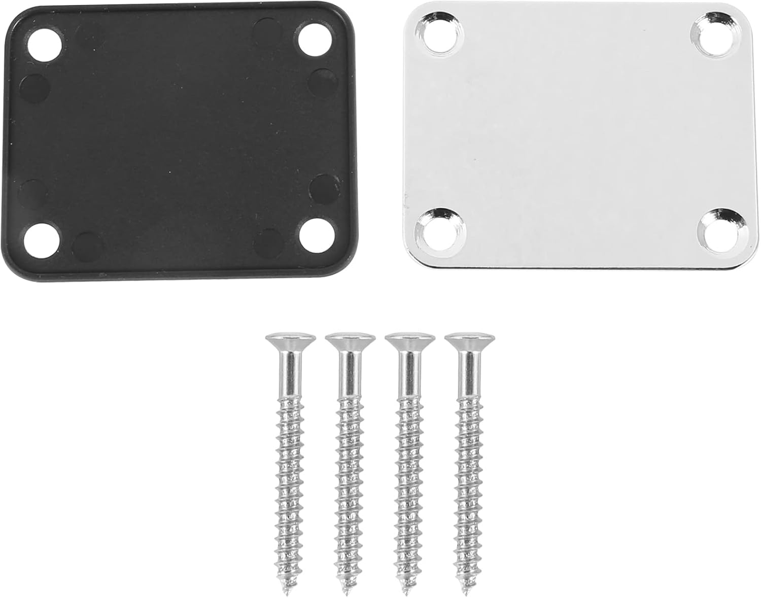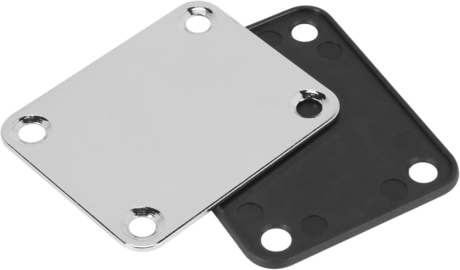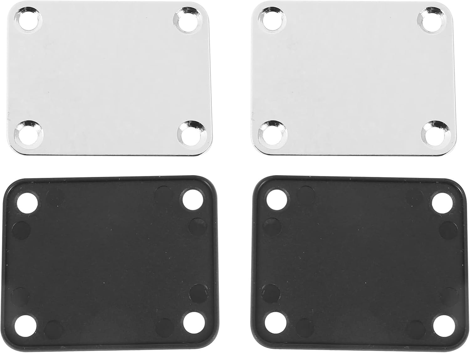 Specchio a piastra per proteggere la finitura del corpo della chitarra si avvita il collo. Dimensioni piastra collo (L x L): circa 64 mm x 51 mm / 2,5 pollici x 2 pollici, Distanza fori di montaggio (L x L): circa. 51 mm x 38 mm / 2 pollici x 1,49 pollici Questa placca è in acciaio cromato molto ben fatto. Di solito adatto per la maggior parte delle chitarre e FD Jazz, ti preghiamo di controllare le misure prima 'acquisto. Il tappetino in gomma nera che aiuta a proteggere la parte posteriore della chitarra e aggiunge un po 'di danno per aiutare a fermare il serraggio delle .