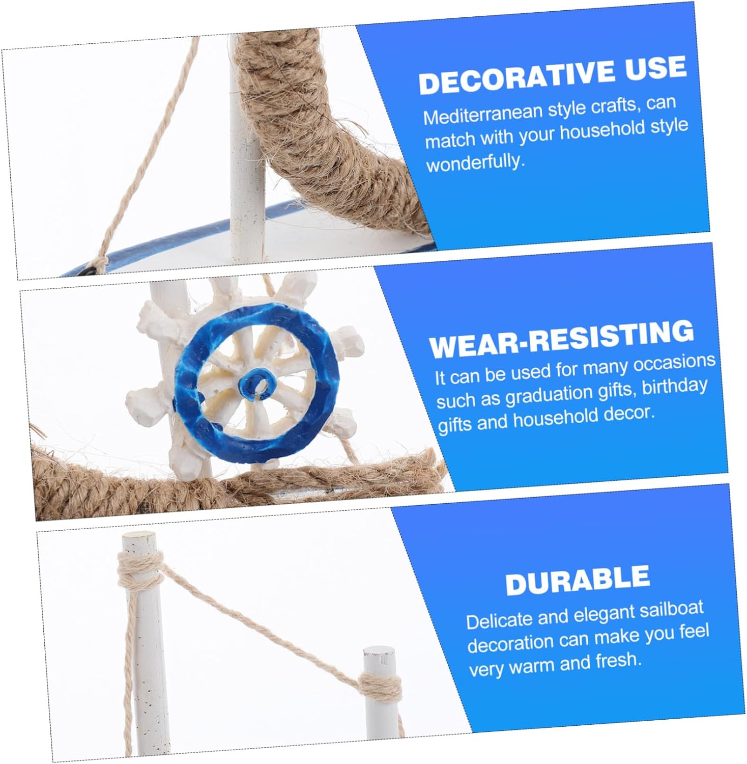 Decorazioni per barche a vela: possono essere utilizzate per molte , come regali laurea, regali compleanno e decorazioni per la casa, decorazioni a Decorazione a forma barca a vela: artigianato in stile , si abbina perfettamente allo stile della tua casa, decorazione a forma barca a vela Barca a vela in miniatura: il design creativo e l'aspetto possono offrirti un'eccellente esperienza visiva, modello barca a vela Per barca a vela: il suo materiale è legno pregiato e robusto con struttura robusta, resistente all'usura e buon effetto decorativo, timone per decorazioni da spiaggia Modello barca: ampia applicabilità, decora l'ambiente , migliora la qualità della vita, i colleghi possono anche rilassare umore, decorazioni per barche a vela