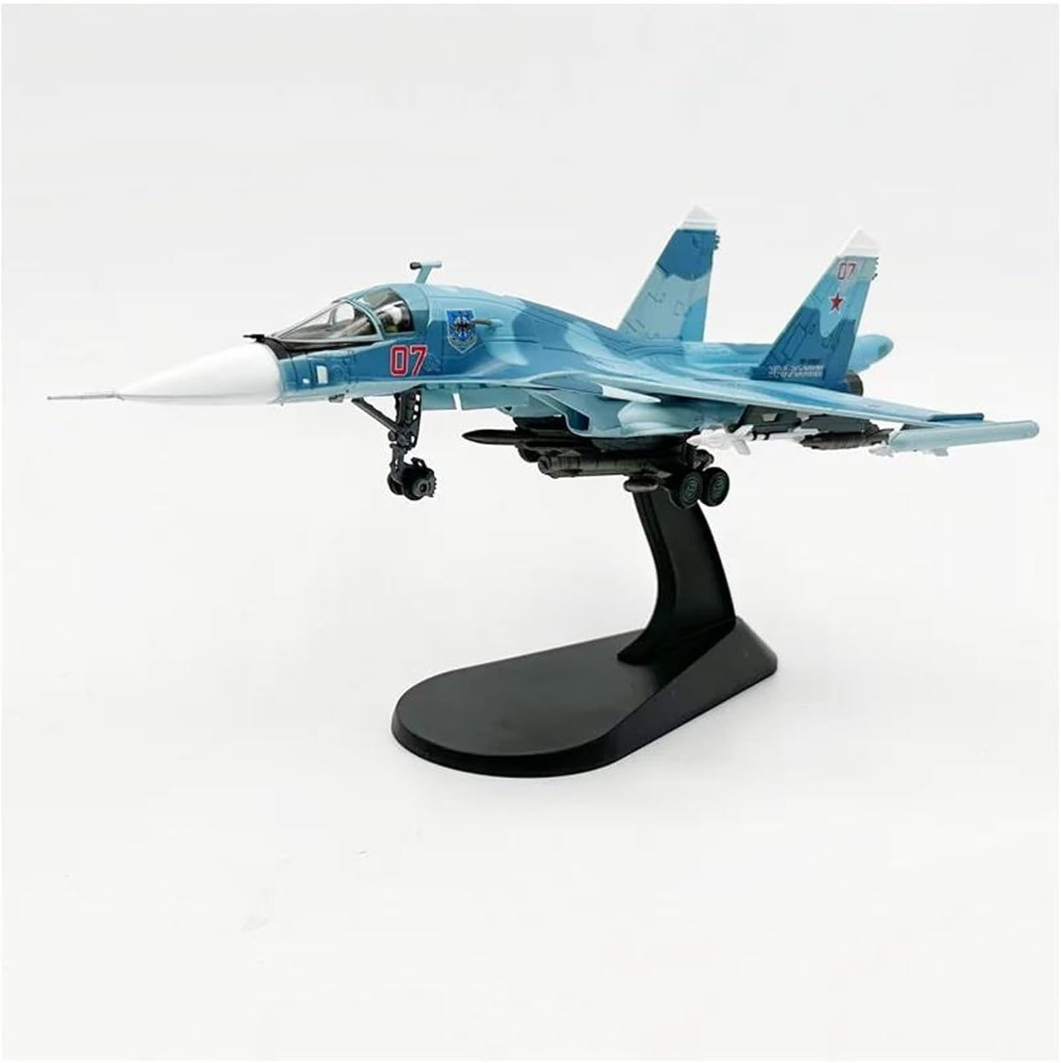 Esecuzione squisita: dettagli ricchi lo fanno sembrare affidabile ed educativo. È un modello di aereo perfetto e iconico per le persone che amano gli aerei. Giocattoli decorativi per modellini di aerei da caccia Su-34 in scala 1/100 pressofusi. L'aeromodello ha una lunga apertura alare e linee della fusoliera lisce. Gli squisiti modelli di aerei sono una combinazione di artigianato e tecnologia e rappresentano il nostro desiderio e la nostra esplorazione per un futuro migliore. Applicabile: decora la tua vetrina, scrivania e ufficio. Perfetto per la raccolta. Condividi la tua passione per il volo presentandone uno alla tua famiglia e ai tuoi amici.