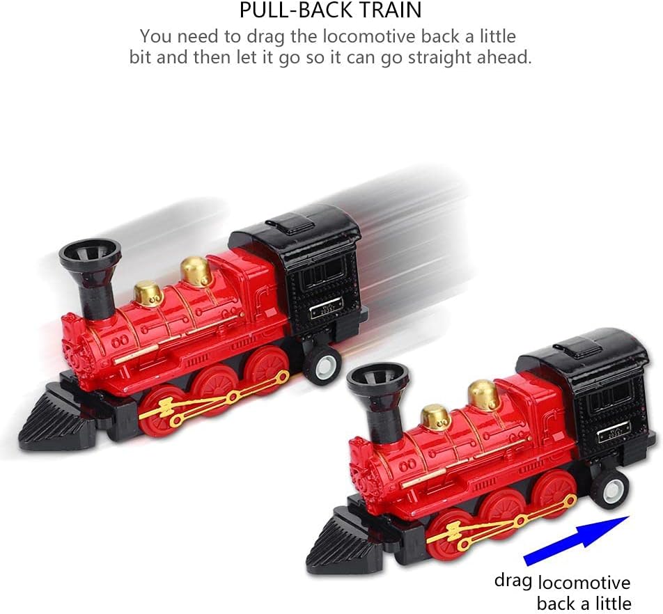 [Costruzione in lega durevole] La locomotiva è realizzata in una lega forte, garantendo la durata durante il gioco. [Funzione di divertimento divertente] Divertiti a guardare la locomotiva andare dritto dopo averlo tirato indietro leggermente. [I carrelli di interconnessione] Il set include una locomotiva e tre carrozze che possono essere facilmente collegate per il gioco esteso. [Design adorabile e unico] Con quattro diverse forme e motivi, la modella di un piccolo treno carino e interessante affascerà l'immaginazione dei bambini. [Portatile e conveniente] Questo giocattolo piccolo e delicato è facile da trasportare, rendendolo per divertimento in movimento.