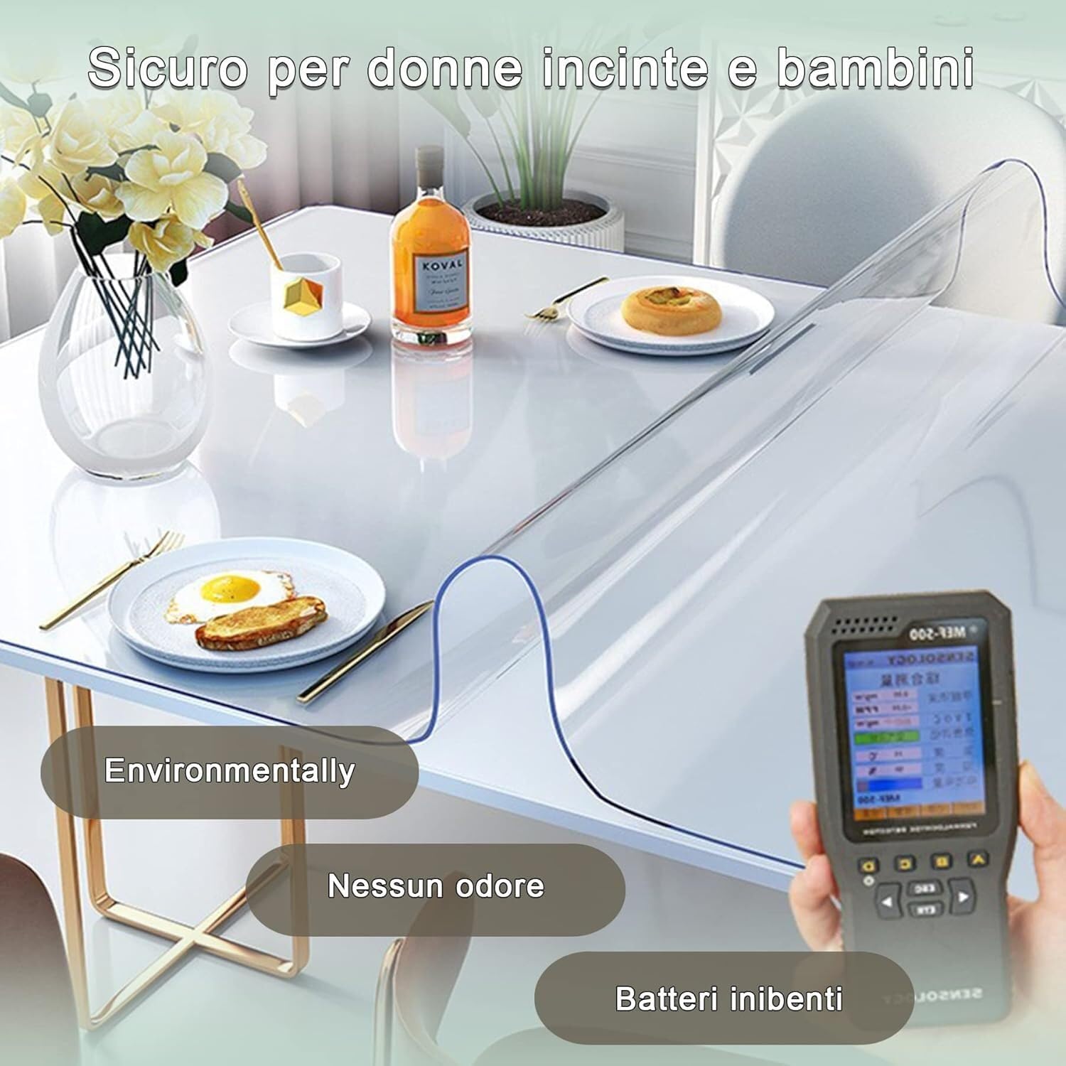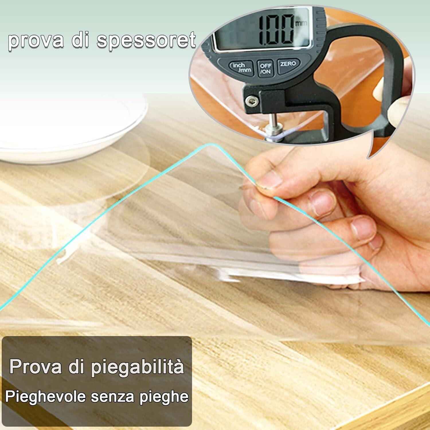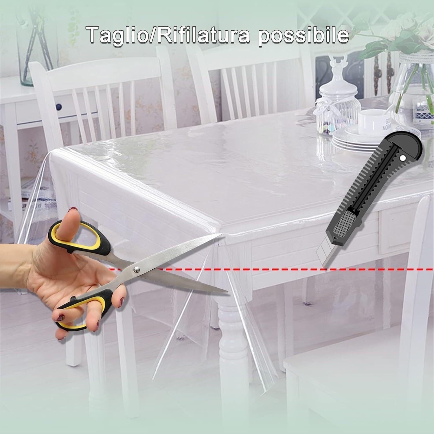 Protezione versatile: protegge i tavoli da pranzo, le scrivanie, le tovaglie e le superfici dei mobili da graffi, usura, macchie e versamenti. Adatto for tavoli da pranzo, piani di tavoli in legno, piani di lavoro testurizzati, scrivanie da ufficio, scrivanie, tavolini da caffè e tavolini laterali, mobili TV, tolette, comodini, superfici di banconi e pavimenti in legno duro. Design portatile: facile da trasportare for picnic all'aperto; arrotolabile for risparmiare spazio quando non in uso o durante il trasporto. Ideale for picnic, barbecue, campeggio e grigliate all'aperto. Facile da stendere: fornita in rotolo, la tovaglia trasparente in PVC impiega 1-2 giorni for riacquistare la sua planarità dopo essere stata disimballata. Se non dovesse appiattirsi adeguatamente, utilizzare un asciugacapelli a temperatura tiepida for lisciarla. Tagliabile: facilmente rifilabile su misura. Segna le dimensioni precise con una matita, quindi taglia con un coltello affilato o delle forbici.