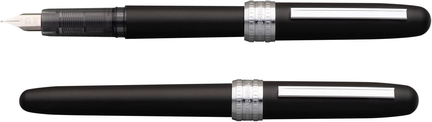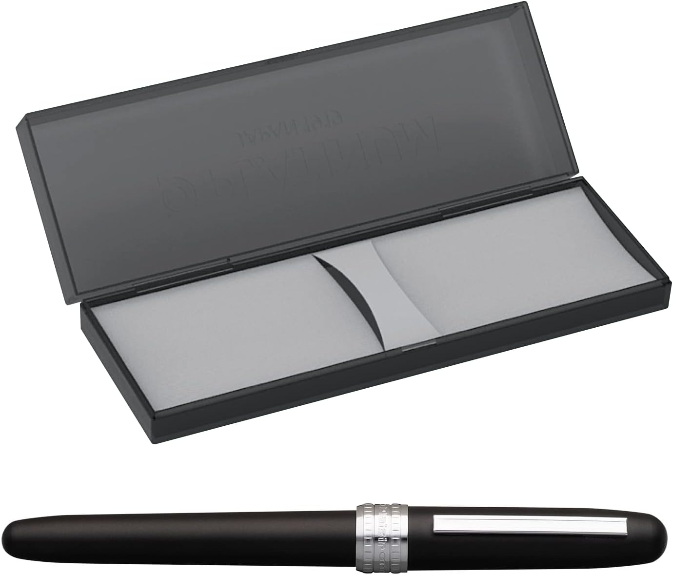 Penna stilografica Platinum Plaisir Black Mist edizione speciale. Corpo e cappuccio in alluminio di colore nero satinato e finitura rodiata. Gradazione di scrittura: sottile. Penna stilografica e cartuccia inclusi.