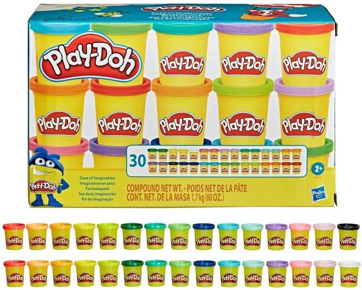 IMMAGINAZIONE IN 30 VASI: Questa confezione da 30 vasetti Play-Doh è perfetta per gli hobby creativi dei bambini e per i giocattoli prescolari per ragazze e ragazzi COLORI ASSORTITI DIVERTENTI: Con molteplici esempi di sfumature di rosso, verde, blu, arancione e rosa, tra gli altri, questi vasetti Play-Doh sono perfetti per attività in classe, piccoli regali o semplicemente per condividere CIALDE PLAY-DOH da 56 G: Con un totale di 1,7 kg di argilla da modellare Play-Doh, questi I vasetti richiudibili da 56 g sono pieni di argilla colorata per i bambini che amano giocare con la plastilina SPAZIO PER L'IMMAGINAZIONE: i giocattoli Play-Doh sono attività per le piccole mani dei bambini, piccoli regali, giocattoli da viaggio, lavoretti per bambini in età prescolare, materiale scolastico e altro ancora UN REGALO PER RAGAZZE E RAGAZZI: i giocattoli creativi sono regali divertenti per i bambini, dai 2 anni (contiene grano)