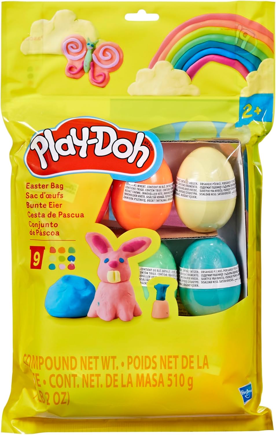 UOVA DI PASQUA SENZA CIOCCOLATO: queste uova Play-Doh sono un'ottima alternativa alle uova di cioccolato, come regali da parte del coniglietto pasquale per bambini e bambine e per tutti i tipi di occasioni creative 9 COLORI FESTOSI: un arcobaleno dentro una sacca con uova di colore rosso, arancione, giallo, verde, turchese, blu, viola pastello e neon rosa 56 GRAMMI A UOVO: ogni uovo è pieno di 56 grammi di pasta modellabile gommosissima e plasmabile (contiene grano) CACCIA ALLE UOVA E REGALI PER PASQUA: nascondi le uova di Pasqua già riempite per una divertente caccia al tesoro per bambini e bambine oppure usale come alternativa alle uova di cioccolato REGALINI PER FESTE INN-UOVA-TIVI: aggiungi un uovo o due in una busta contenente regalini per feste o tieni le bambine e i bambini occupati con attività artistiche interattive
