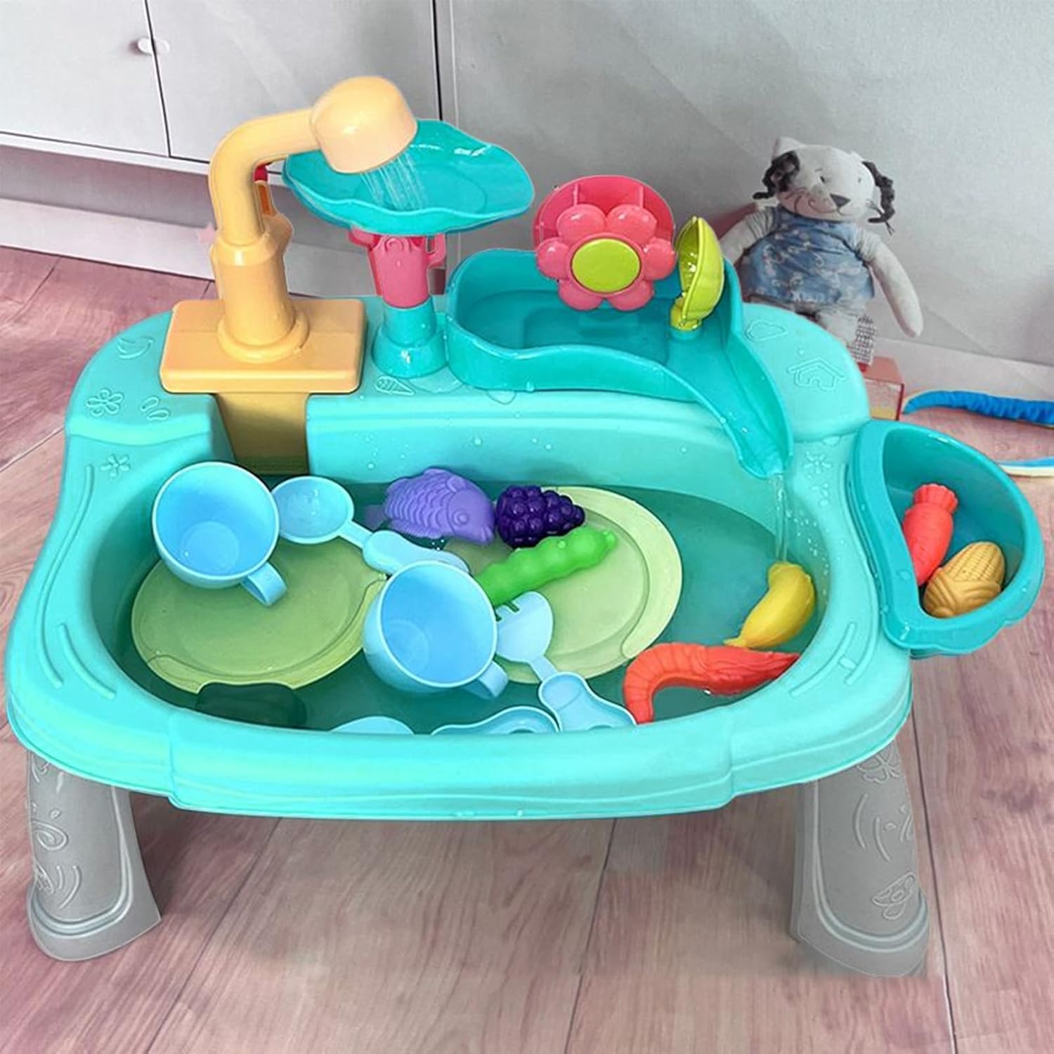 Realistic Running Water Feature: This play sink is equipped with an electric water circulation system, allowing children to enjoy realistic running water while washing dishes, providing an engaging and immersive play experience that mimics real-life kitchen activities. Educational and Developmental Benefits: Promotes fine motor skills, hand-eye coordination, and cognitive development. Encourages responsibility, cleanliness, and learning as kids mimic adult behavior in a fun, age-appropriate way. Complete Pretend Kitchen Accessory Set: Includes colorful dishes, utensils, scrub brushes, and a drying rack, offering hours of creative role play. Kids can “cook,” wash, and organize their kitchen, making every play session interactive and imaginative. Safe, Harmless & Strong Design: Crafted from , child-safe with rounded edges, the sink and accessories are built to withstand rough play while ensuring your child’s safety during water-based fun. Easy to clean and maintain. Perfect Gifting for Kids Aged 3 and Up: Ideal for birthdays, holidays, or just-because moments, this toy sink is suitable for both boys and girls. A fun addition to any playroom or learning center, it keeps kids entertained while nurturing useful life skills.