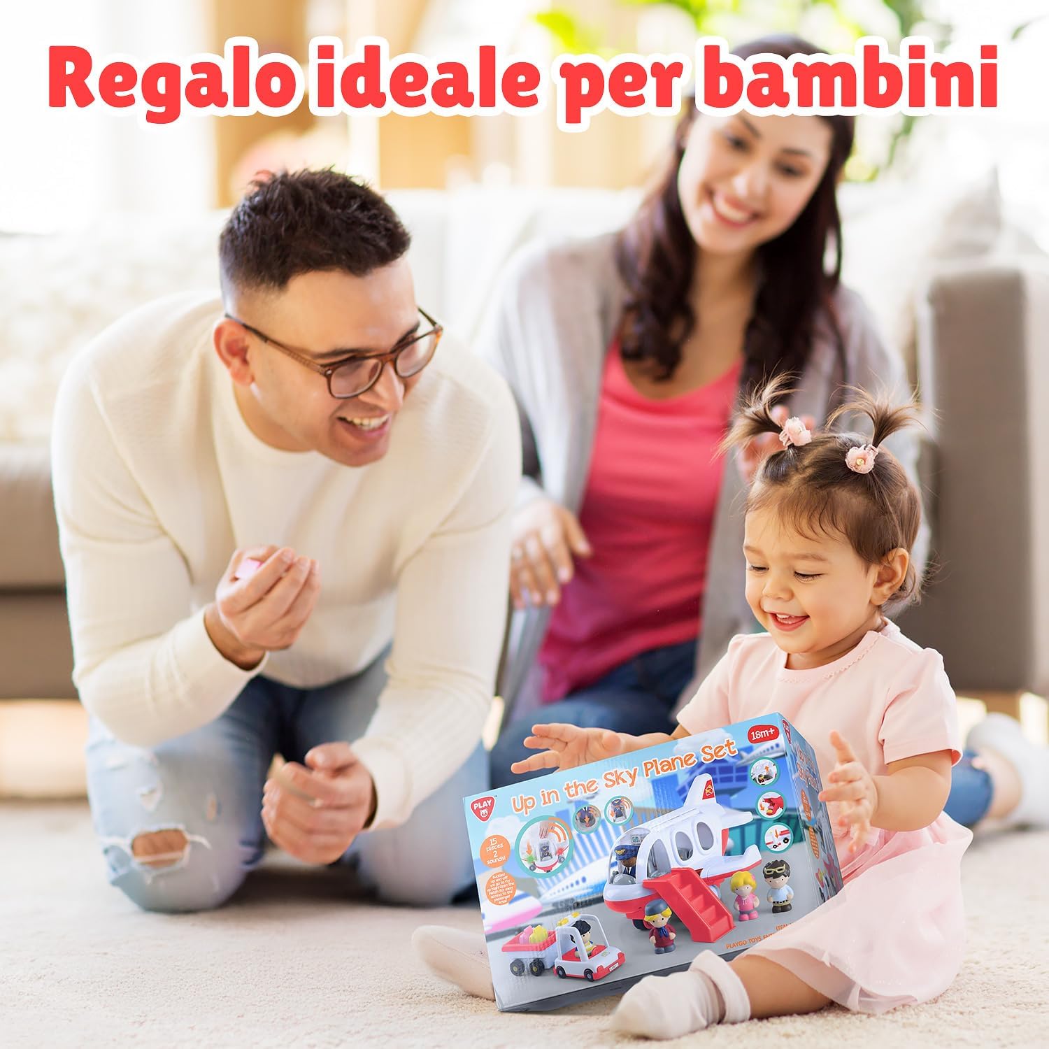 [Set di giocattoli da viaggio a forma di aereo di grande valore] Questo fantastico set di giocattoli da viaggio include 1 aereo giocattolo, 1 carrello portabagagli, 5 bambole personaggio, 2 valigie, 1 scaletta per passeggeri dell'aereo e una varietà di accessori giocattolo per soddisfare tutte le esigenze dei bambini in fatto di aerei giocattolo. [Divertimento senza fine] Il design dettagliato di questo aeroplanino giocattolo trasforma all'istante il tuo bambino in un piccolo pilota! Basta spingere delicatamente la fusoliera o premere il pulsante della cabina di pilotaggio per sentire gli effetti sonori del decollo e dell'atterraggio dell'aereo, accompagnati da fantastiche luci di navigazione lampeggianti, che ti faranno sentire come se fossi in un vero aeroporto. Dispone inoltre di una porta e di un vano bagagli apribili, nonché di un rimorchio portabagagli collegabile, consentendo ai bambini di sperimentare appieno l'intero processo di check-in, carico e decollo! [Interazione genitore-figlio] Giocattoli educativi per la prima infanzia a tema familiare, progettati con cura tenendo conto di diversi ruoli (capitano di volo, assistente di volo, padre, madre, figlio), in modo che i bambini possano vivere un emozionante viaggio in aereo con i genitori. Passare da un ruolo all'altro durante il volo simulato aumenta il divertimento e migliora l'interazione e la comunicazione tra genitori e figli. [Scorta sicura e decollo felice] Questo aeroplano giocattolo è realizzato in materiale ABS+ sicuro per i bambini, non contiene BPA, è atossico e inodore, ha bordi lisci e ha superato la certificazione europea di sicurezza dei giocattoli. È finemente realizzato, robusto e durevole, così i bambini potranno divertirsi e i genitori potranno sentirsi più tranquilli! (Sono necessarie 2 batterie AAA, non incluse nel kit) [Un fantastico regalo per i bambini]: questo set di giocattoli aerei per bambini di età superiore ai 2 anni è molto adatto da regalare ai bambini in giorni speciali come compleanni, Natale, festa dei bambini, Capodanno, ecc. Lascia che i tuoi bambini esplorino il divertimento del volo, stiano lontani dagli schermi elettronici e li accompagnino a crescere felici!