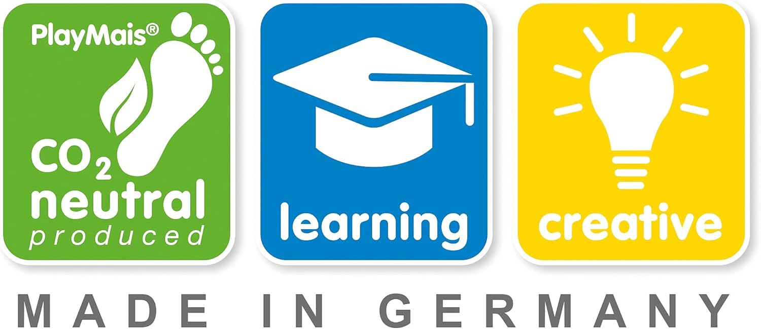 Set creativo per il fai da te: con oltre 300 accessori colorati PlayMais e extra per il fai da te, i bambini possono esprimere la loro creatività. Adatto anche come complemento per PlayMais World. Facile da usare: super resistente grazie alla leggera inumidimento con acqua – senza colla per bricolage. PlayMais aderisce a cartone, carta per bricolage e vetro. Con il kit creativo, il vostro bambino diventerà un vero hobbista. Divertimento garantito: non importa se stai cercando un nuovo giocattolo per il tuo bambino o stai cercando idee regalo per compleanni, il divertimento fai da te è garantito con PlayMais Prezioso pedagogico: come vero tuttofare, la scatola per bricolage stimola le capacità motorie di ragazze e ragazzi in tenera età. Il mais Play può essere deformato con le dita o tagliato. Prodotto naturale Made in Germany: i prodotti di PlayMais sono biodegradabili al 100% e vengono sviluppati e prodotti in Germania. Il materiale ecologico è composto da semola di mais e acqua, è colorato con coloranti alimentari.
