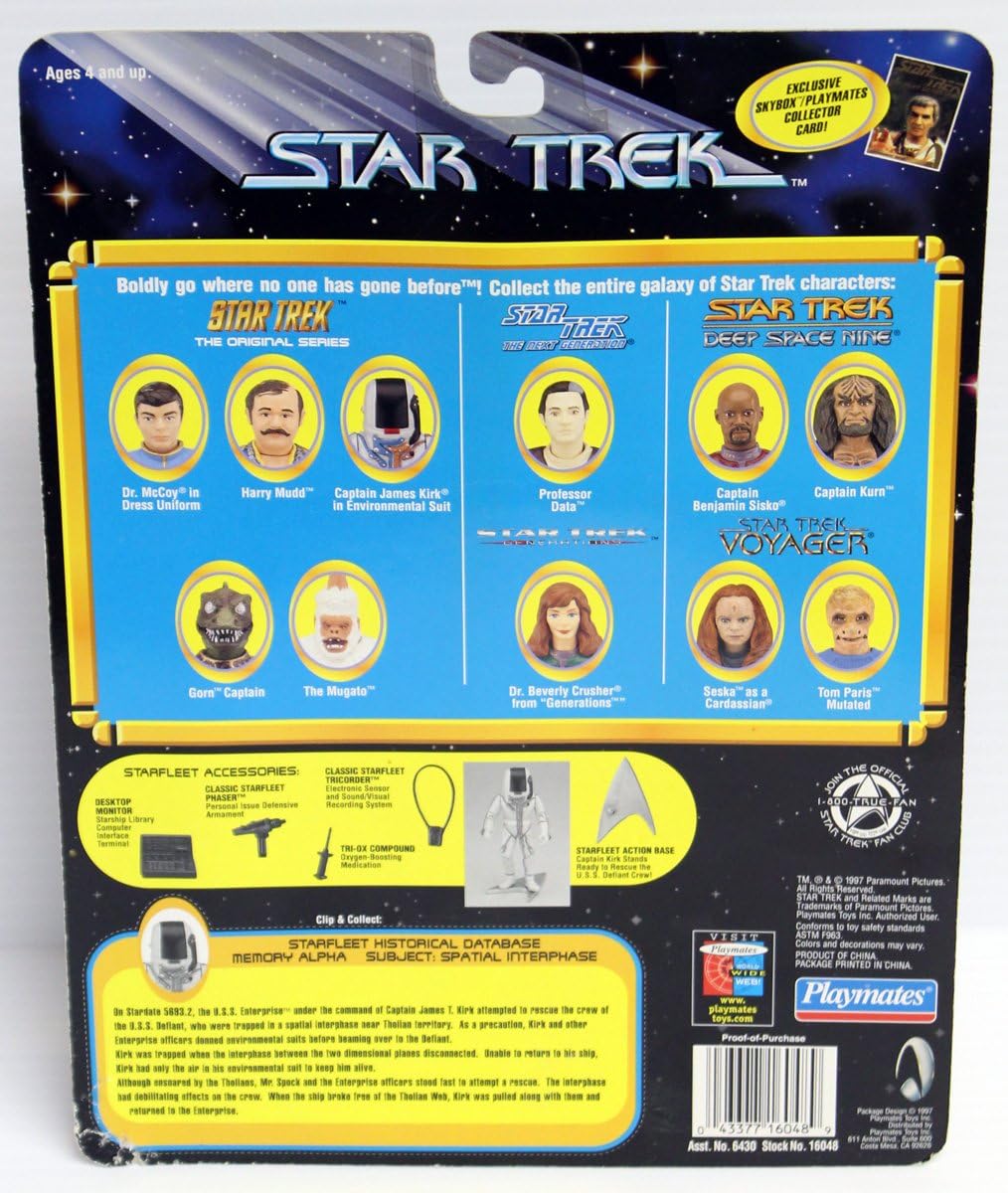 Captain Kirk in environmental suit Star Trek: The Original Series Action Figure from the episodi tholiani Web Include: Classic Starfleet tricorder, Classic Starfleet Phaser, monitor Desktop, tri-ox composti e Starfleet Action Base di visualizzazione. Figura misura circa 11,4 cm di altezza. Originariamente pubblicato nel 1997 – retired/OUT di produzione.