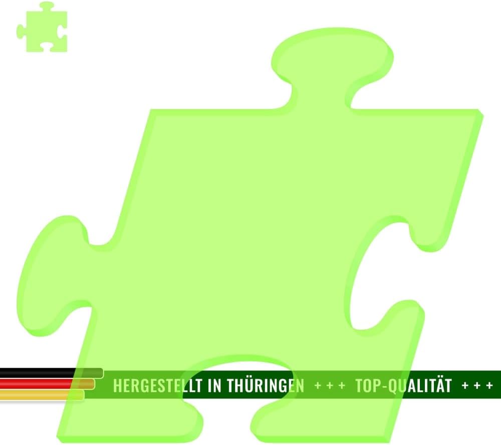 PLEXIGLAS Puzzle Taglio, Verde Fluo, Trasparente Questo puzzle è tagliato al laser in Plexiglas/vetro acrilico. Grazie al materiale fluorescente, i bordi di taglio brillano molto luminosi in caso di luce. I pezzi del puzzle sono disponibili in una dimensione da 3 cm a 50 cm di larghezza con incrementi di 1 cm, molto stabili e riutilizzabili. Questi sono prodotti da noi stessi su laser di alta qualità in acrilico/Plexiglas. Disponibile in set da 10, 25, 50 o 100 pezzi. Il puzzle viene fornito con pellicola protettiva per evitare che si graffi. Tutti i pezzi del puzzle della stessa dimensione possono essere inseriti senza soluzione di continuità. Ideale per artigianato, decorazione, modellismo, ecc. Caratteristiche: + Materiale: vetro acrilico colato (GS). + Spessore del materiale: circa 3 mm. + Colore: verde fluo trasparente. + Forma: puzzle. + Dimensioni (larghezza): da 3 cm a 50 cm di larghezza con incrementi di 1 cm. + Disponibile singolarmente o in set da 10, 25, 50 o 100 pezzi. + Tutti i tagli sono tagliati a laser. + Superficie: lucida dopo la rimozione della pellicola protettiva. + Resistente alle intemperie e al gelo. + Resistente ai raggi UV. + Traslucenza della luce 89%. + Lavorazione pulita e di qualità. + Prodotto in Turingia/Germania. Misura di riferimento Con una larghezza selezionata, ad esempio, di 10 cm, l'altezza con i naselli è di 10 cm. Questo articolo è escluso dal ritiro! Questo articolo viene prodotto dopo l'acquisto nella misura ordinata. Pertanto, questo non può essere restituito. Per ulteriori informazioni, si prega di consultare il diritto di recesso. Parole chiave: PLEXIGLAS - Puzzle in vetro acrilico, acrilico, decorativo, plexiglas, fai da te, decorazione, modellismo, verde fluo, trasparente Plexiglas è un marchio registrato di Röhm GmbH a Darmstadt, Germania.