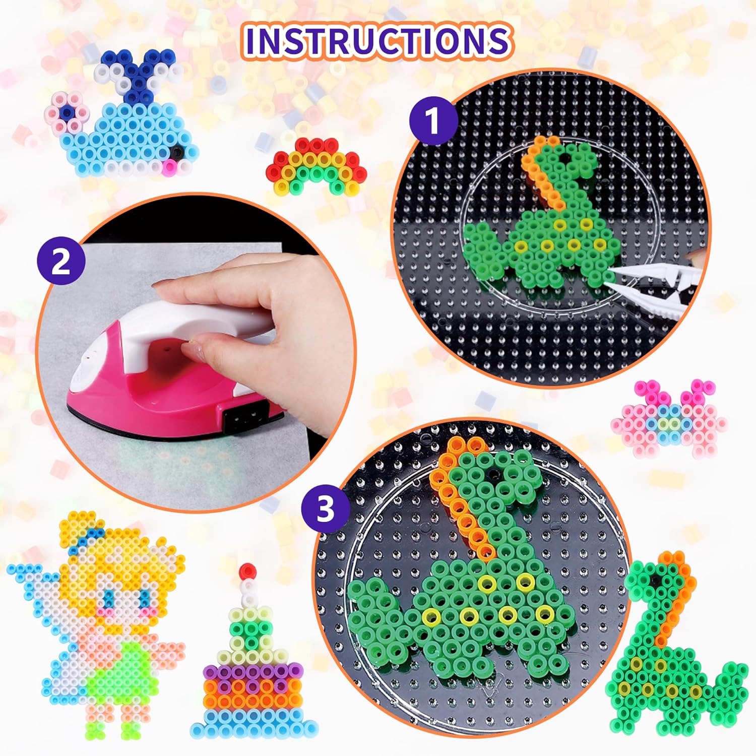 Mini Ferro Elettronico Incluso: Il set di perline fuse è dotato di un mini ferro elettronico, che rende facile unire insieme le creazioni di perline senza bisogno di un ferro separato. Kit Completo di Perline Fuse: Questo kit di perline fuse Pllieay include perline fuse in ferro colorate da 5mm in 24 colori vibranti, un mini ferro, 2 plance per perline, 2 carte da stiro, 2 pinzette, un manuale di istruzioni, 4 portachiavi, 4 corde per portachiavi, 20 anelli aperti, un cucchiaio e una ciotola per migliorare la tua esperienza di creazione. Perfetto per creare una varietà di design divertenti e creativi. Facile da Usare: Basta posizionare le perline su una plancia secondo il tuo design, coprire con la carta da stiro e stirare leggermente fino a quando le perline si fondono. Girare e stirare l'altro lato, quindi lasciare raffreddare per completare la tua opera d'arte. Incoraggia la Creatività e la Pazienza: La guida ai modelli inclusa nel kit di perline fuse fornisce una varietà di design perfetti per portachiavi fai-da-te, decorazioni, artigianato 2D o 3D. Questo kit aiuta ad insegnare ai bambini la pazienza e migliora le loro abilità imaginative e creative. Perfetto per Ragazzi e Ragazze: Questo kit di perline fuse è ideale sia per ragazzi che per ragazze, rendendolo un ottimo regalo per compleanni, vacanze o qualsiasi occasione speciale. Perfetto per sviluppare le abilità motorie fini e incoraggiare il gioco immaginativo.
