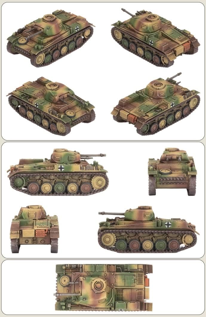 Include tre carri armati Panzer II (2 cm) di plastica. I modelli vengono consegnati non verniciati. È richiesto il montaggio. Colla, vernici e accessori per hobby venduti separatamente.