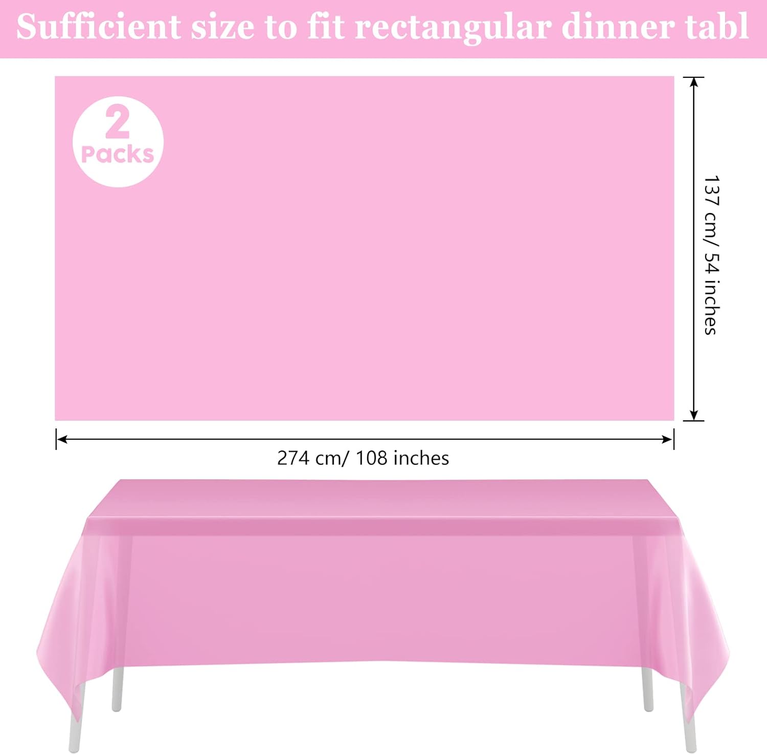 La confezione include: 2 tovaglie di plastica rosa. Decorazioni da tavola per feste per bambini, forniture per feste per baby shower, tovaglia per bambina. Dimensioni: 137 x 274 cm/54" x 108" Tovaglia rettangolare rosa. Se hai bisogno di una dimensione più grande da utilizzare, puoi metterne due o più insieme. Materiale: la nostra tovaglia per feste è realizzata in PEVA, quindi il prodotto è sottile e potrebbe essere un po' trasparente. Se ti dispiace, puoi scegliere una tovaglia di colore scuro. La tovaglia di plastica è impermeabile, a prova di schizzi e facile da pulire. Queste tovaglie sono perfette per feste a tema rosa, feste di compleanno, feste di laurea, baby shower, barbecue, matrimoni, feste di Pasqua, feste di Halloween, feste di Natale e altri eventi a tema Promemoria: la tovaglia di plastica rosa viene spedita piegata, se ti preoccupi della piega, puoi aprirla e appiattirla prima della festa