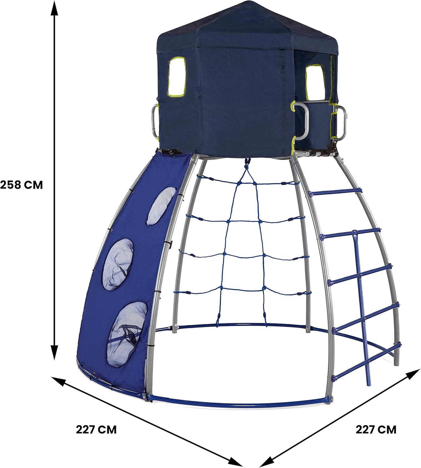 Include i gradini di arrampicata, la rete di interferenza del carico e la parete dell'obiettivo. Realizzato in acciaio zincato che garantisce protezione contro la ruggine Tetto in tessuto