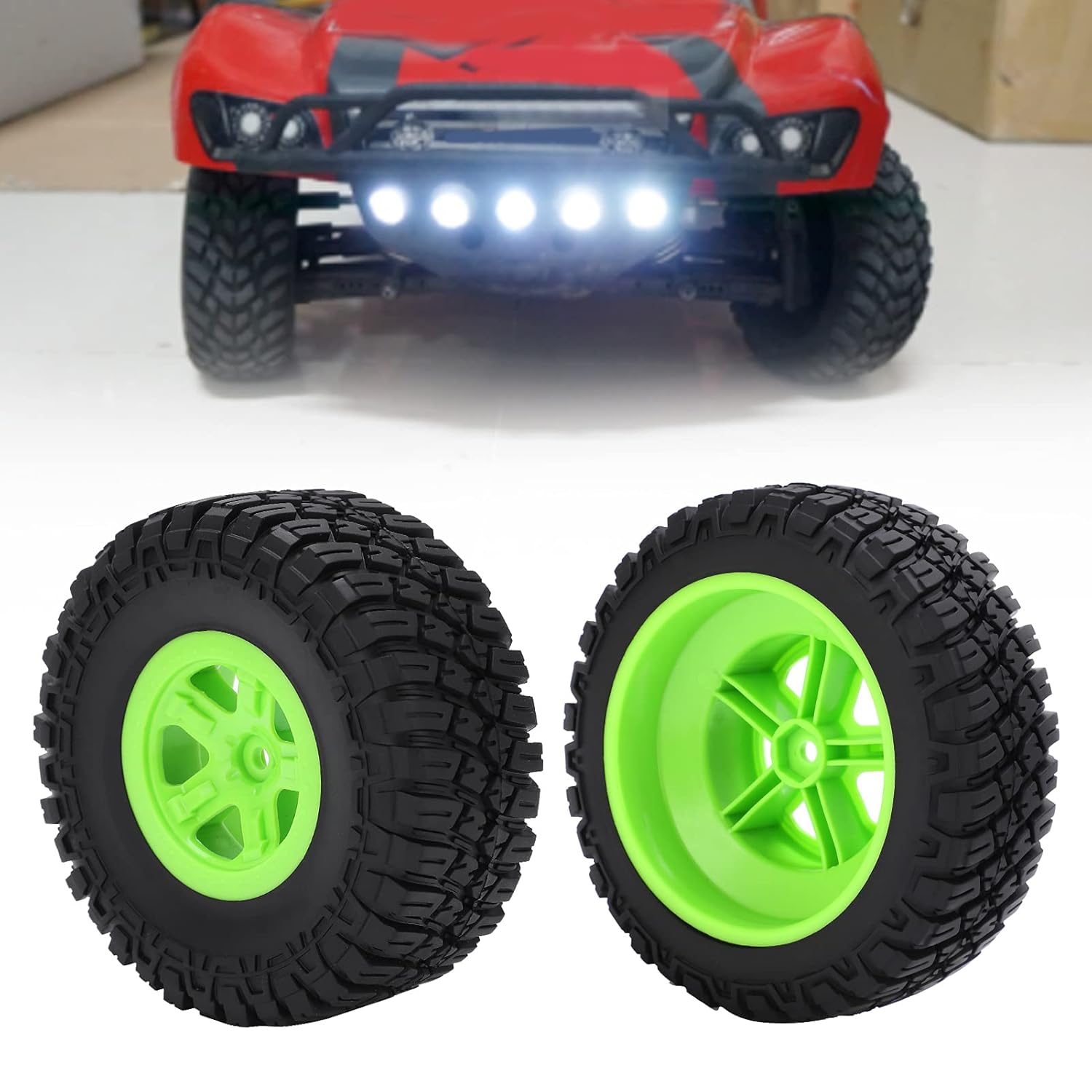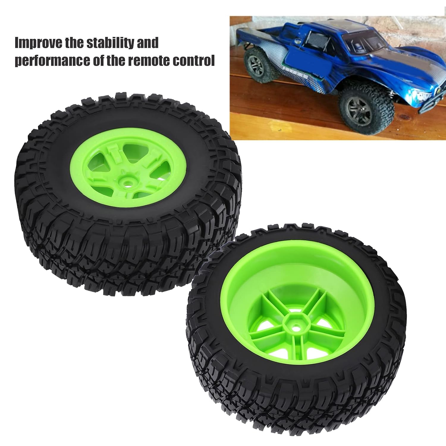 [High Grip & Non Slip Design] Questi pneumatici per auto RC presentano speciale modello di battuta e materiale in gomma premium per una trazione superiore su vari terreni. La lavorazione precisione garantisce una forte presa e impedimento di scivolare anche durante la guida aggressiva, rendendoli ideali per veicoli RC fuoristrada e ad alta velocità. [Prestazioni stabili e durevoli] L'ampio design dei pneumatici migliora la stabilità e il controllo mentre la costruzione di gomma di alta qualità offre un eccellente assorbimento d'urto. Costruiti per resistenza all'usura di lunga durata, questi pneumatici resistono a strade accidentate, salti e sessioni di guida intense senza perdere prestazioni. [Controllo e precisione migliorati] La lavorazione sottile e la distribuzione del peso bilanciata migliorano la manipolazione e la manovrabilità della tua auto RC. Il modello di battistrada ottimizzato garantisce una curva liscia e una migliore accelerazione, dandoti pieno controllo sul tuo veicolo a telecomando. [Facile installazione e sostituzione] Progettata per la configurazione senza problemi, questi pneumatici sono compatibili con la maggior parte delle auto RC in scala 1/10. Servono come parti di sostituzione perfette per ruote usurate o danneggiate, consentendo aggiornamenti rapidi senza la necessità di ulteriori modifiche o strumenti. [Materiali premium e fascino visivo] realizzati in gomma durevole e mozzi di plastica rinforzati, questi pneumatici offrono sia resistenza che stile. I mozzi verdi fluorescenti aggiungono un tocco vibrante all'auto RC garantendo prestazioni di lunga durata in condizioni di guida difficili.