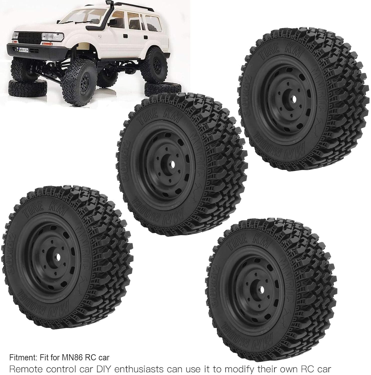 Realizzato in materiale di gomma di alta qualità, resistente all'usura, durevole e di lunga durata. Accessori ideali o parti di aggiornamento che possono sostituire gli pneumatici originali per auto RC usurati o danneggiati. Gli appassionati di auto telecomandate fai-da-te possono usarlo per modificare la propria auto RC, comoda e pratica. Rendi la tua auto telecomandata più fresca e attraente, facile da installare e smontare. Gli pneumatici migliorano efficacemente la stabilità e le prestazioni dell'auto telecomandata, adatta per l'auto RC MN86.