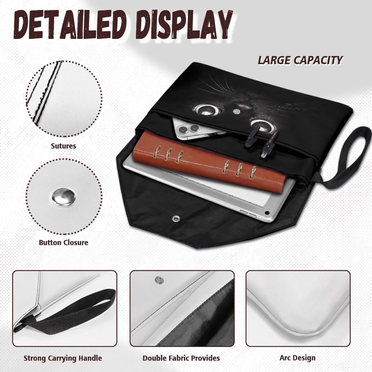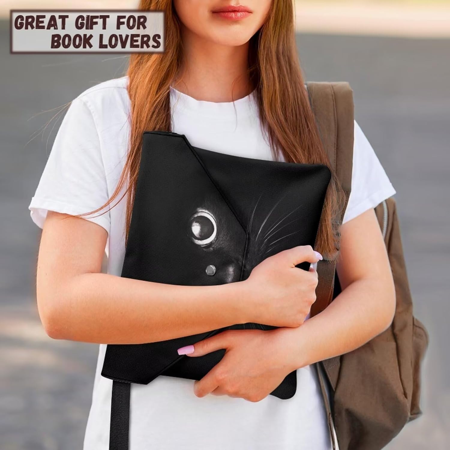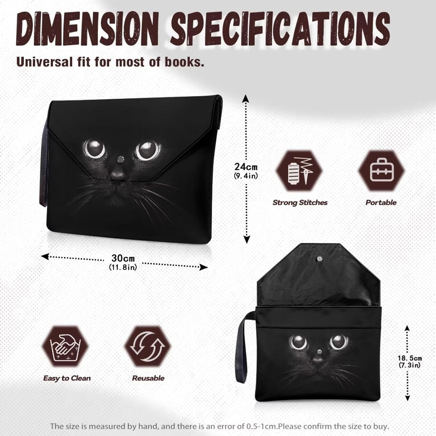 Poceacles Protezione per libri con chiusura a scatto e tasca extra, copertina lavabile per libri in brossura, romanzi, perforatrice per gli amanti dei libri, 30 x 23 cm, gatto nero