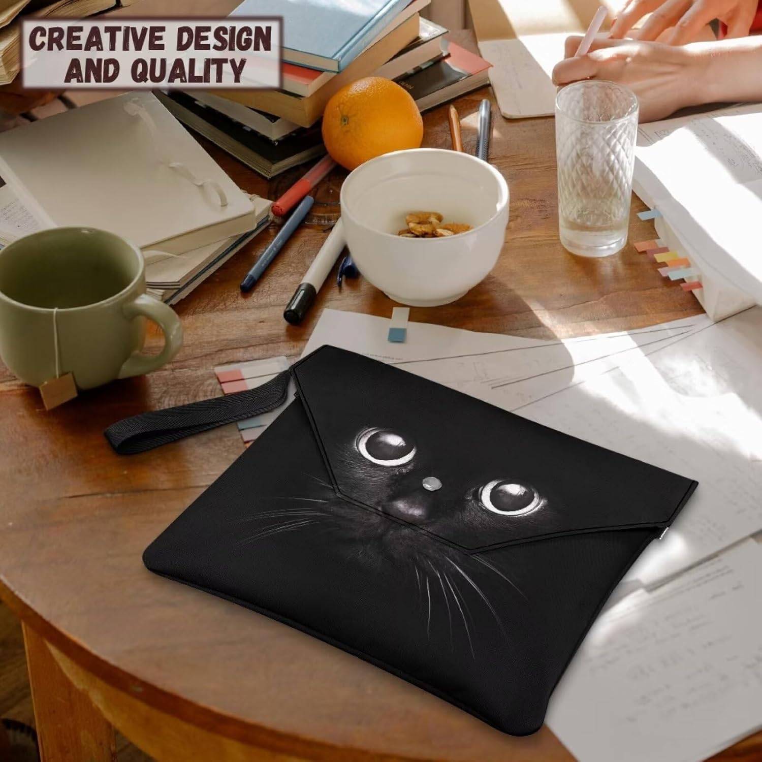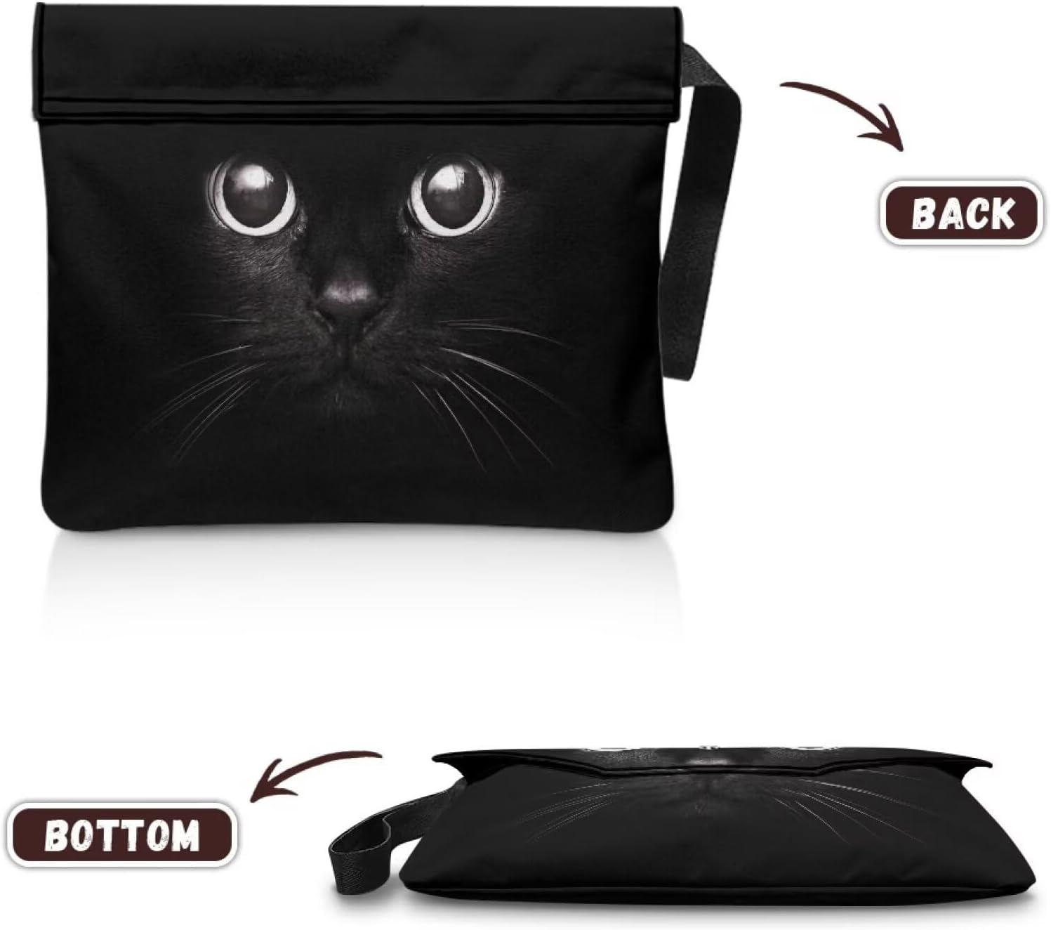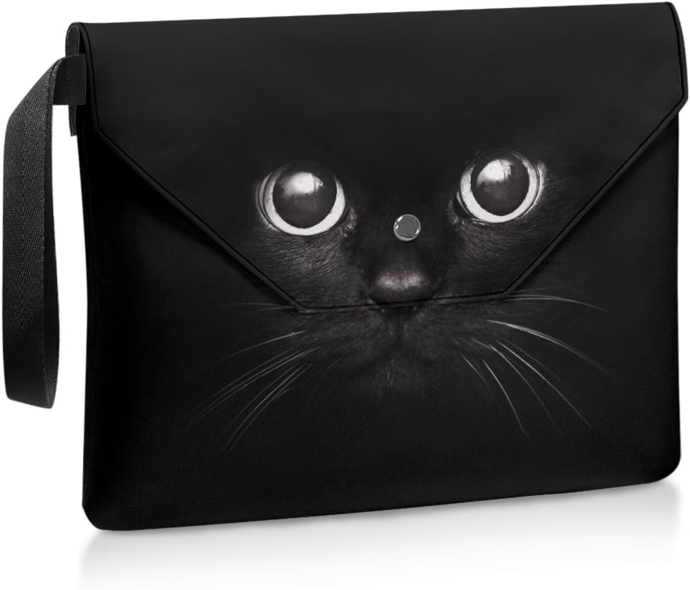 Poceacles Protezione per libri con chiusura a scatto e tasca extra, copertina lavabile per libri in brossura, romanzi, perforatrice per gli amanti dei libri, 30 x 23 cm, gatto nero