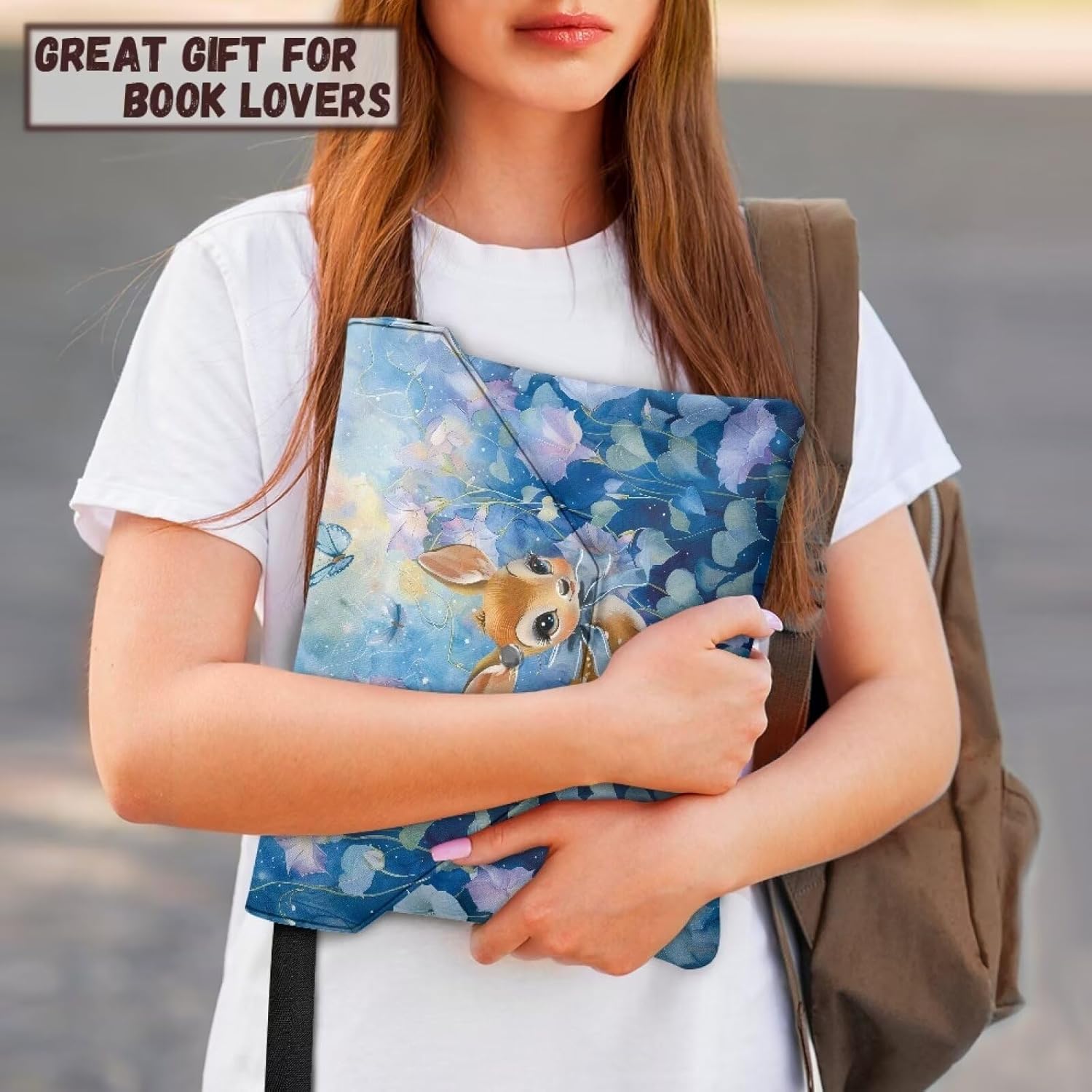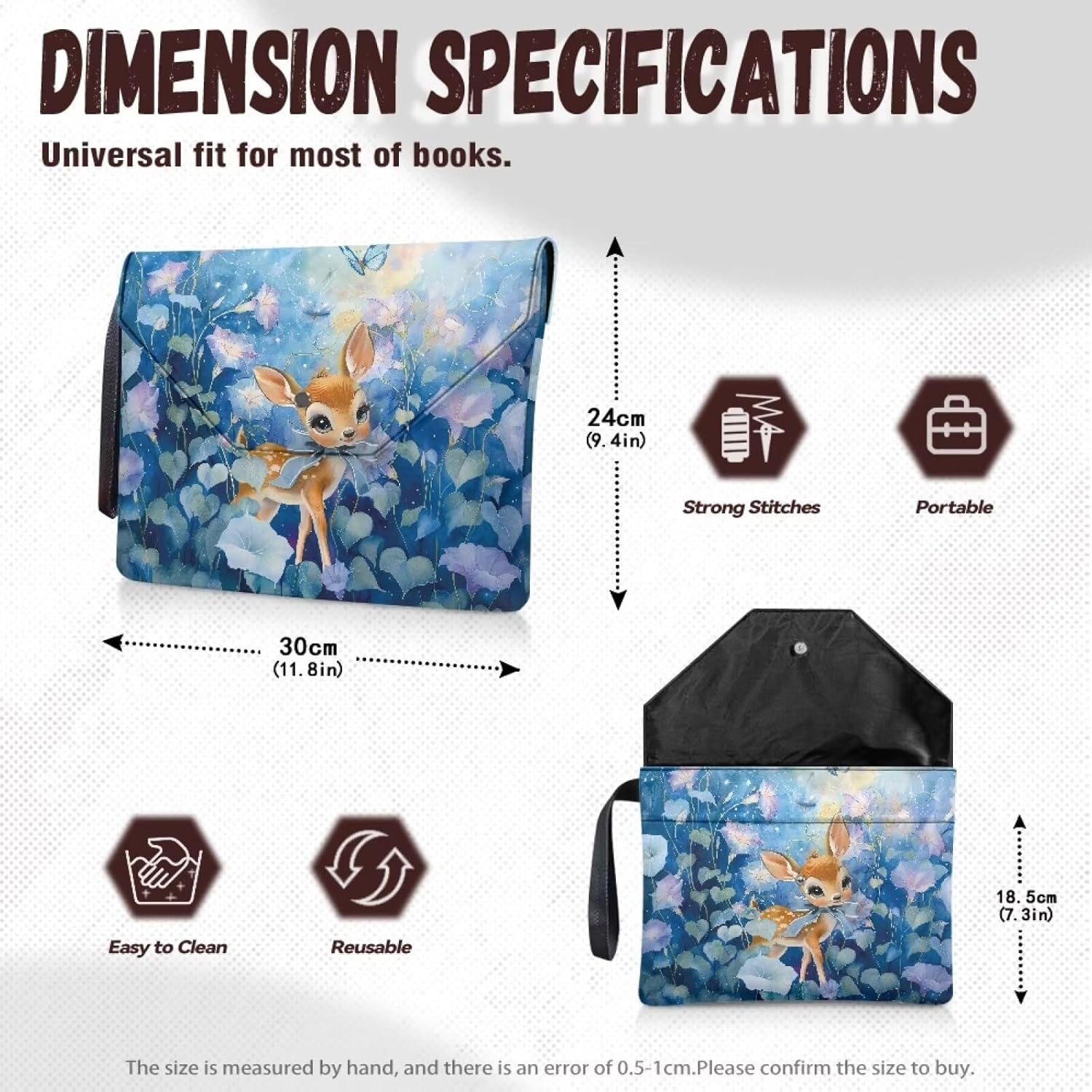 Poceacles Sika - Copertina per libri con foglie di cervo petunia e farfalla, con tasca extra per libri, lavabile, adatta per libri in brossura Bibbia, copertina rigida, romanzo, 30 x 23,9 cm