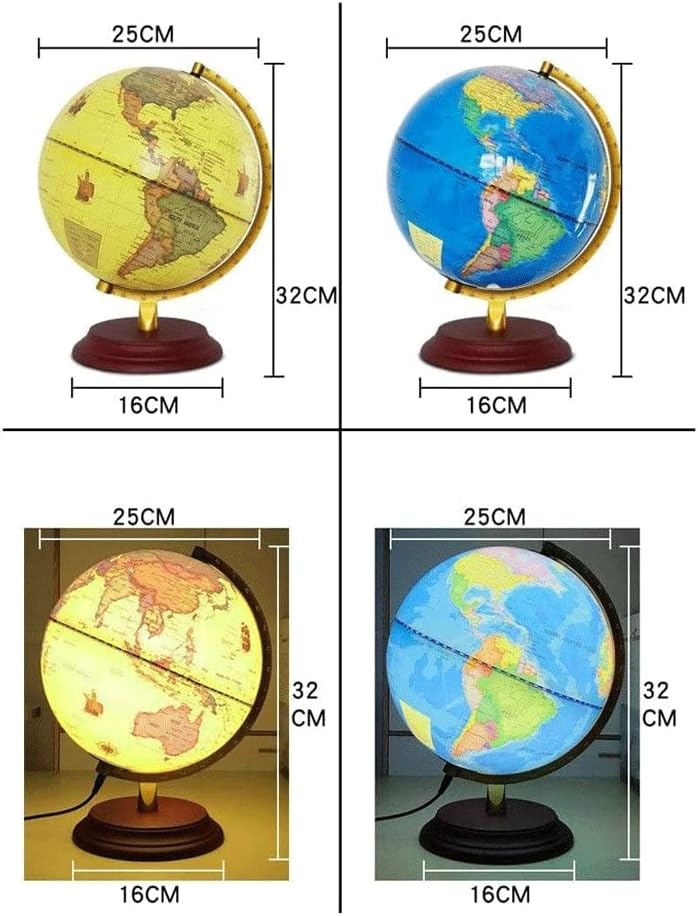 Divertente ed educativo: questo mappamondo è di buone dimensioni, facile da riporre e trasportare, elegante e pratico. Non sbiadisce facilmente, la lunga durata rende l'apprendimento della geografia più interessante e adatto a studenti di età diverse. Elevata durata: la base e il supporto a sfera sono progettati con piastre metalliche in rame. Possono essere durevoli e modellati. L'uso a lungo termine non si spezzerà e resisterà agli urti. Design del carattere: il carattere colorato della pallina non affatica gli occhi dell'utente e protegge la vista dall'abbagliamento. Dettagli: stampa HD in descrizioni inglesi, cinesi e inglesi in tutti i paesi e regioni del mondo; squisito mappamondo geografico, raffigurante il globo dettagliato di montagne, mare, fiume, deserto, lago, capitale dello stato e principali città. Nessuno spazio: a causa delle dimensioni ridotte, non è adatto solo per la decorazione domestica, ma anche per i centri commerciali e non occupa troppo spazio.